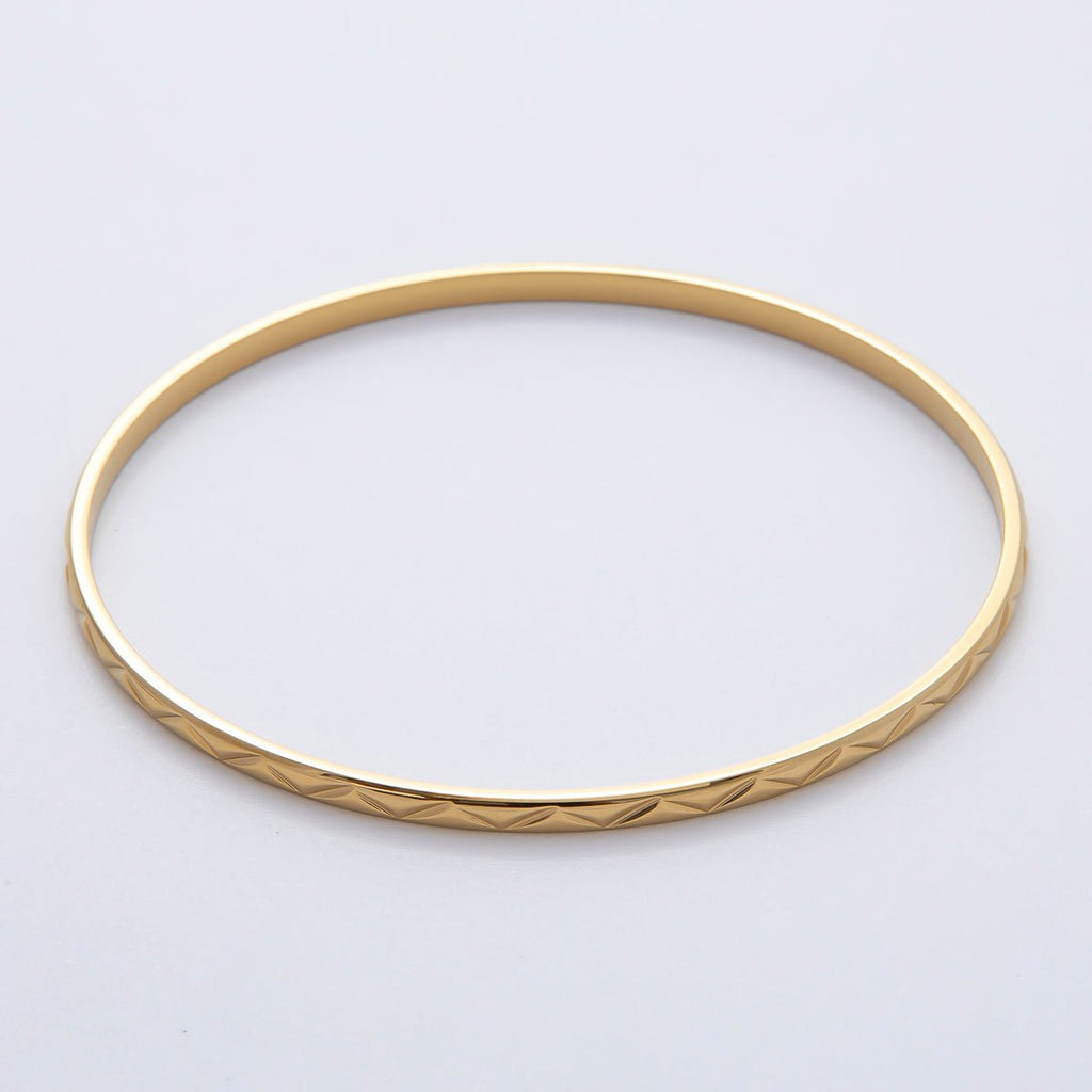 18K Gold Filled 2.5mm Thin Lined Imprint Bangle Bracelet | WA-1472
