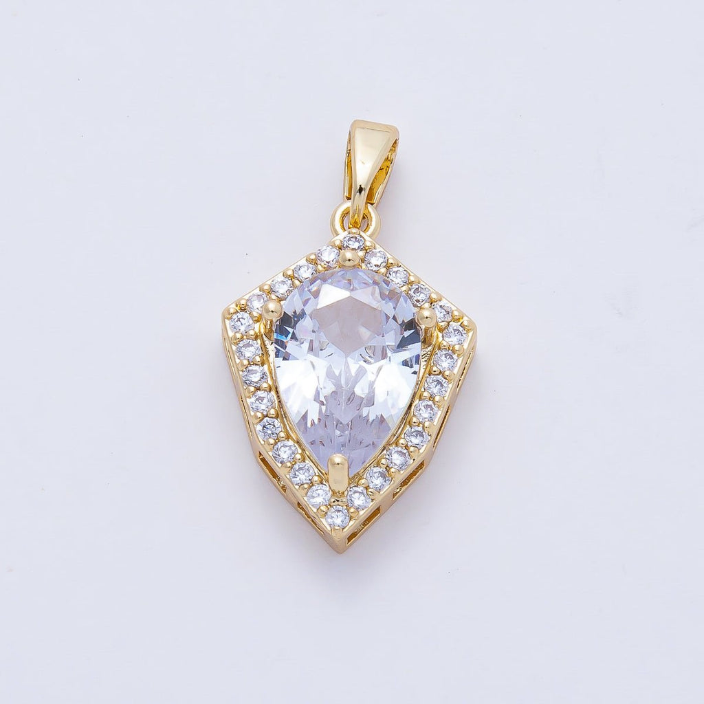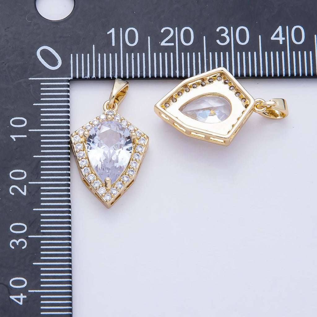 18K Gold Filled 20mm Clear CZ Teardrop Shield Pendant Charm | AF1175