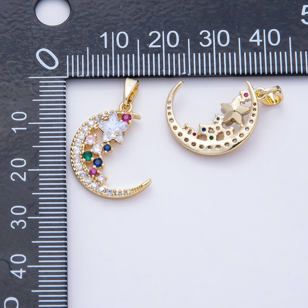 18K Gold Filled 20mm Colorful Celestial Moon and Star Night Sky Pendant Charm | AF1173