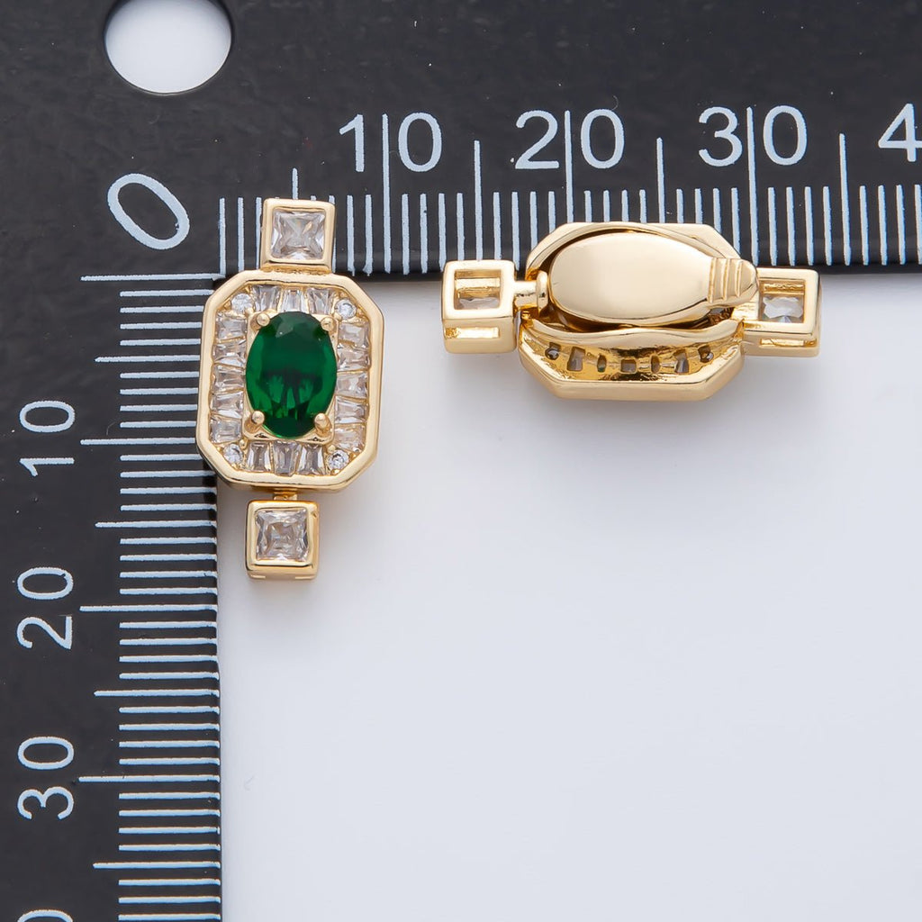 18K Gold Filled 20mm Green Oval CZ Cluster Box Clasps Closure Finding | Z1466
