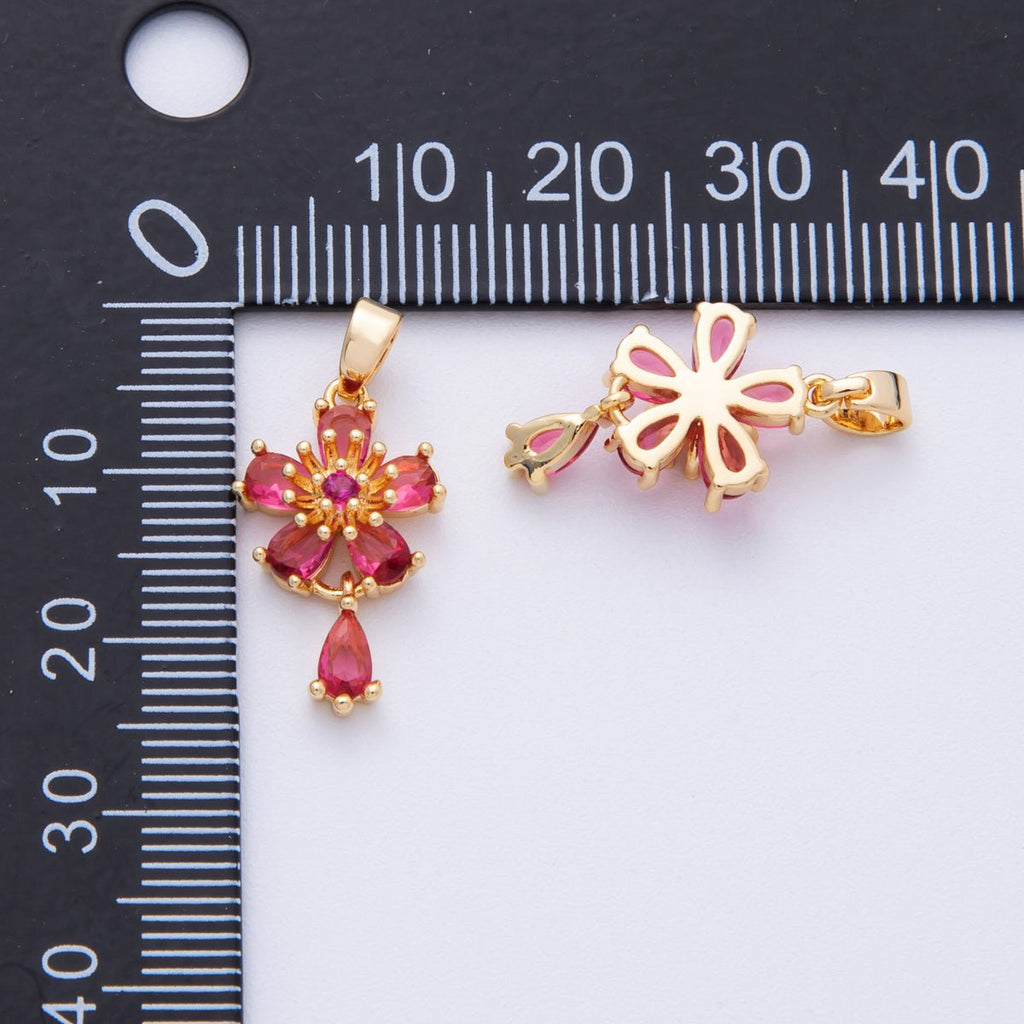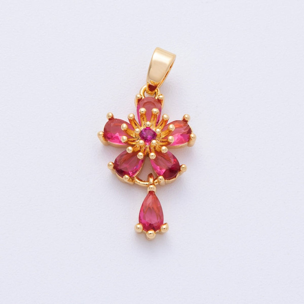 18K Gold Filled 20mm Red CZ Flower Drop Charms | Charms-00109