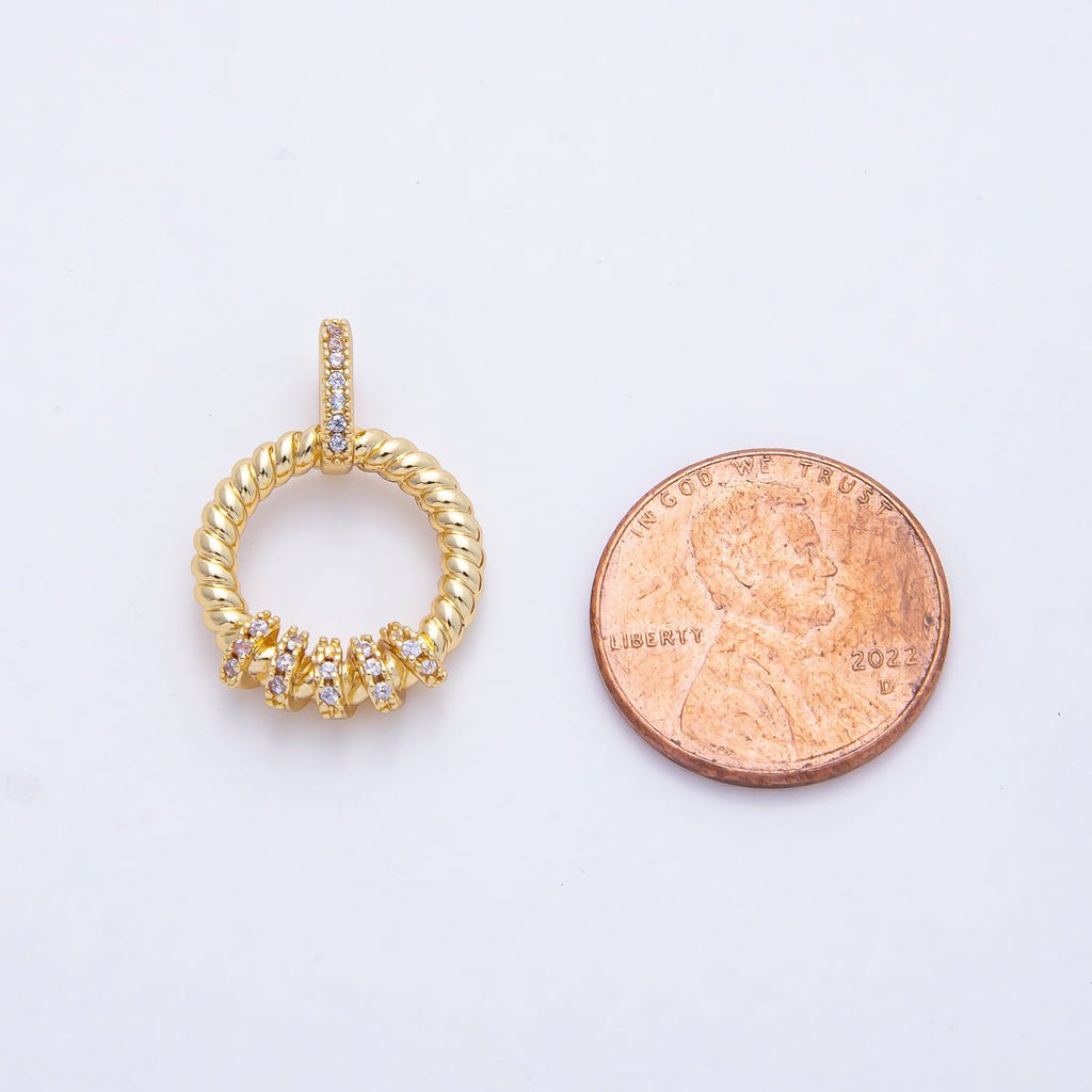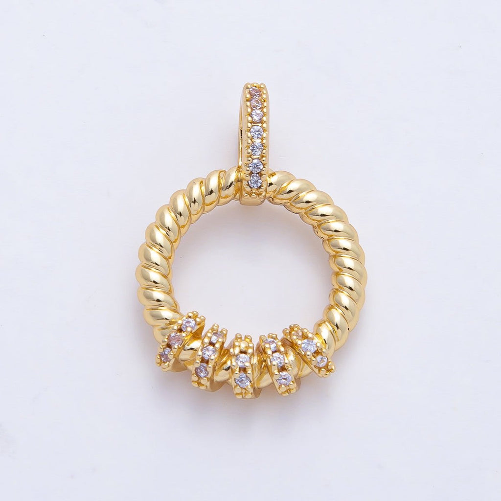 18K Gold Filled 22mm Micro Paved CZ Croissant Rondelle Round Pendant | AF1182