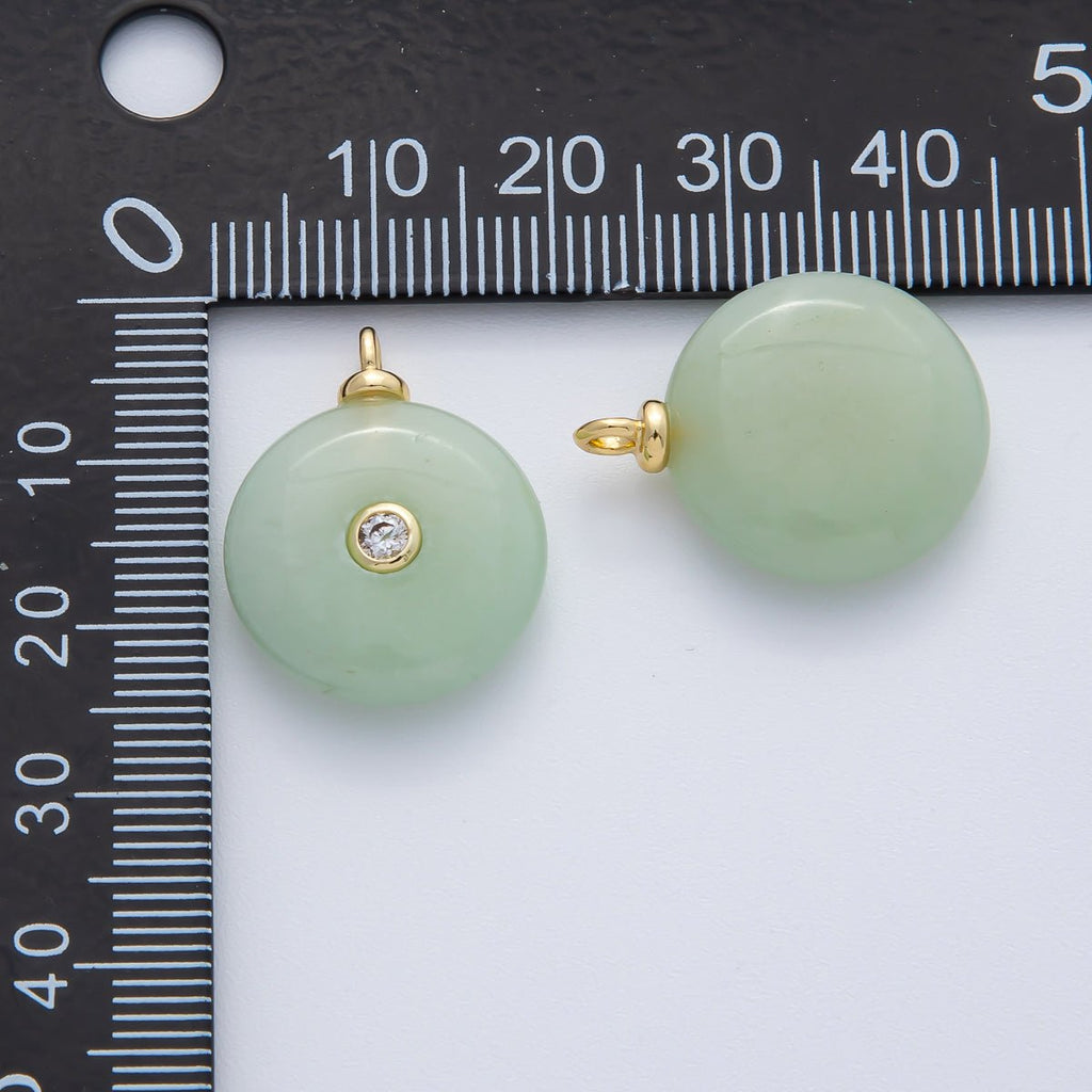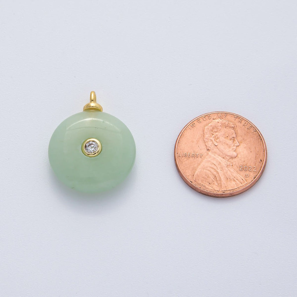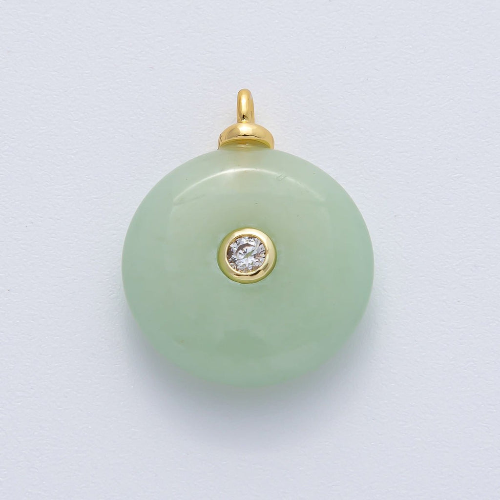 18K Gold Filled 23mm Green Jade with Clear CZ Round Natural Gemstone Pendant | AF1450