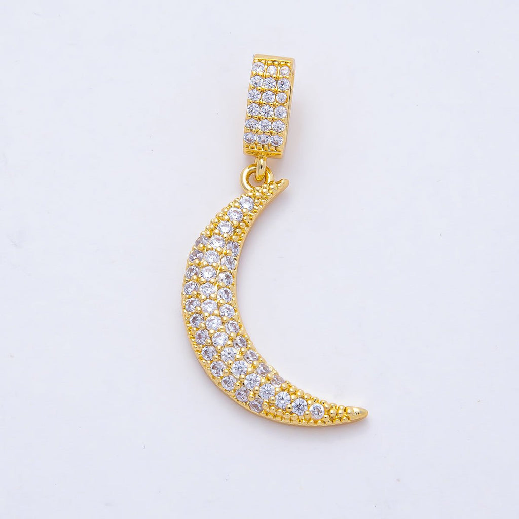 18K Gold Filled 26mm Micro Paved Celestial Moon Pendant Charm | AF1179