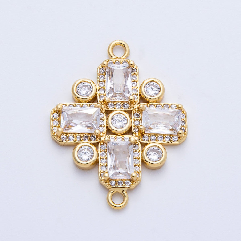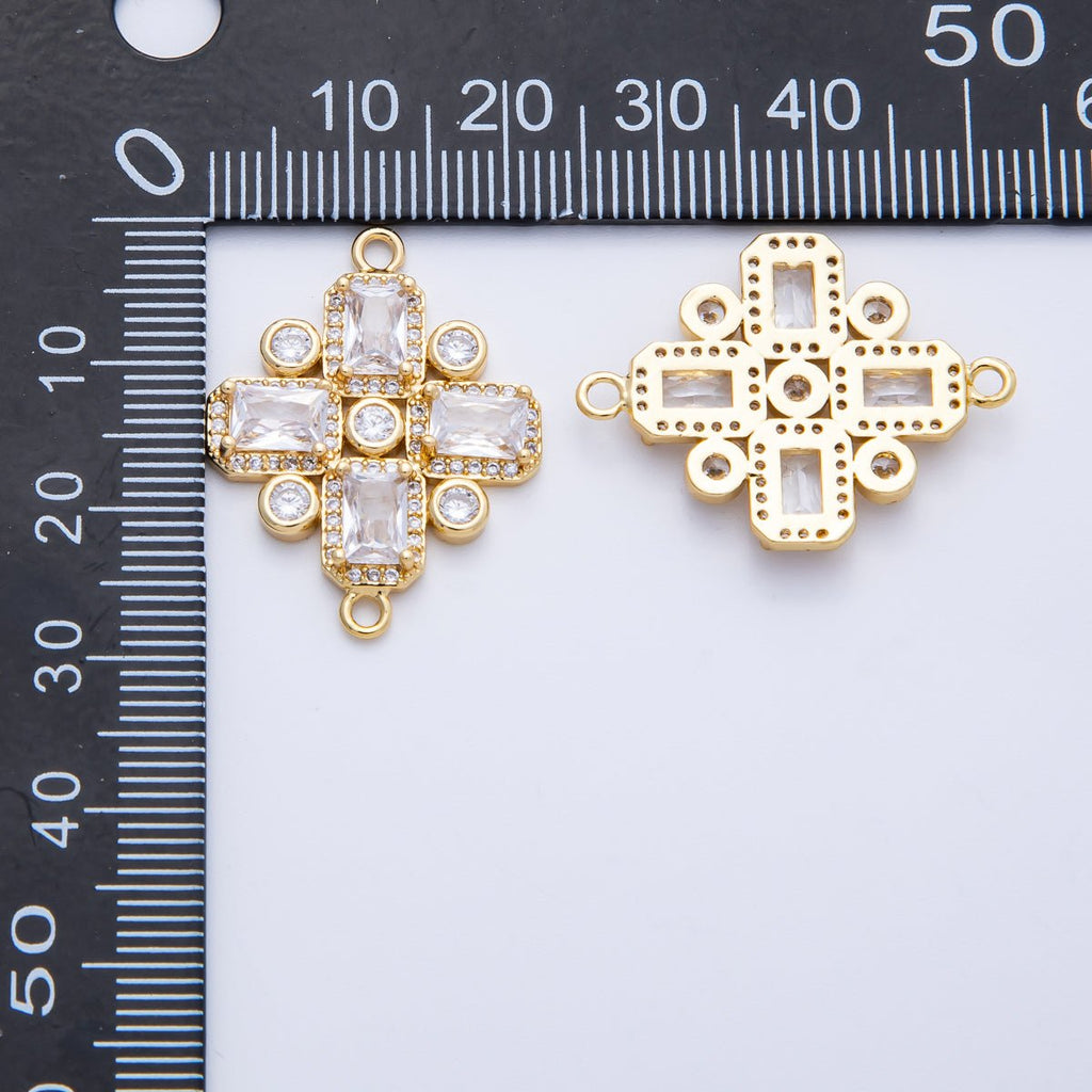 14K Gold Filled 28mm Clear CZ Baguette Micro Paved Geometric Connector | Connectors-00007