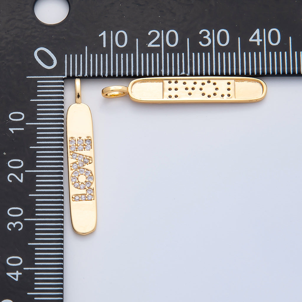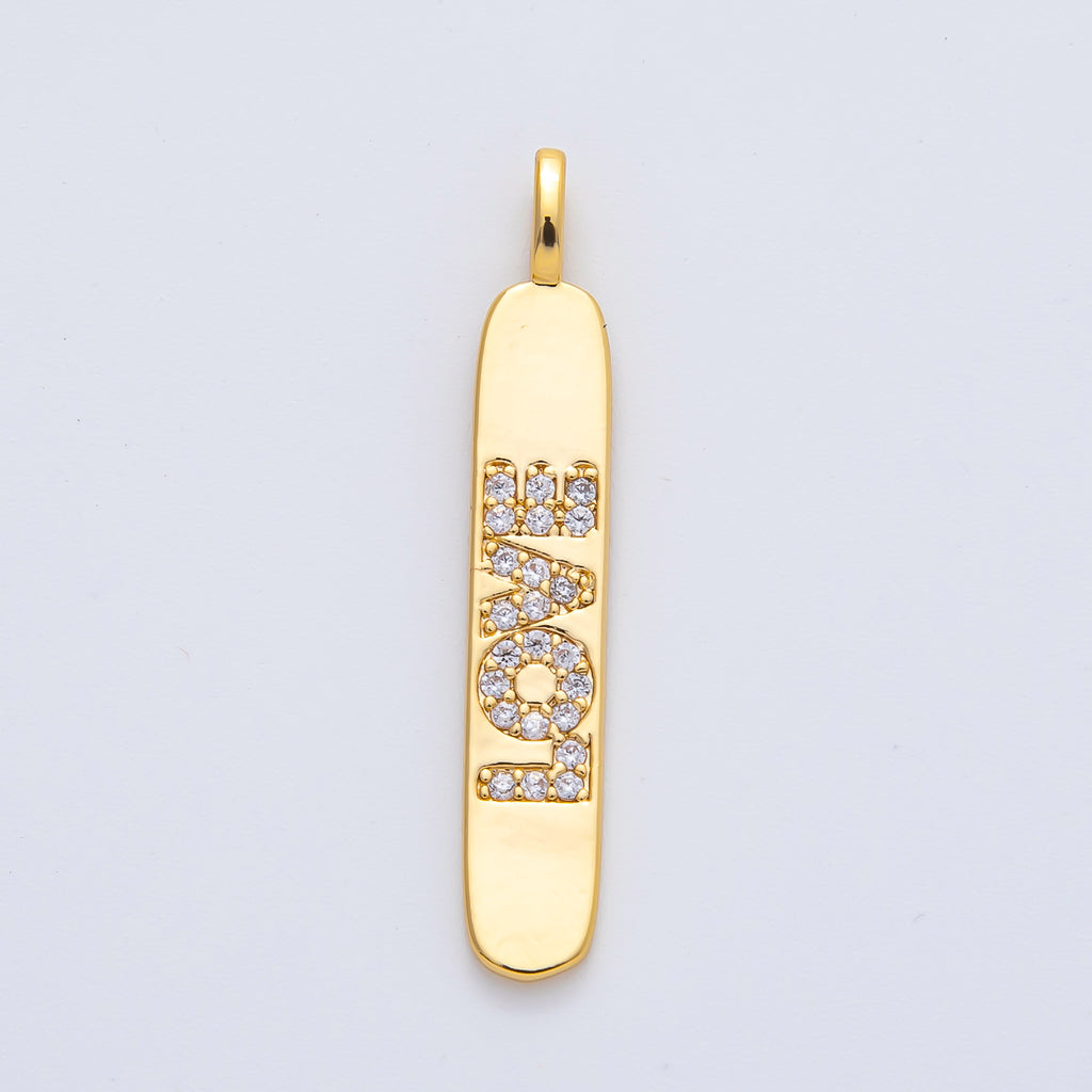 18K Gold Filled 32mm Micro Paved CZ Valentine Love Tag Bar Pendant | AF1185