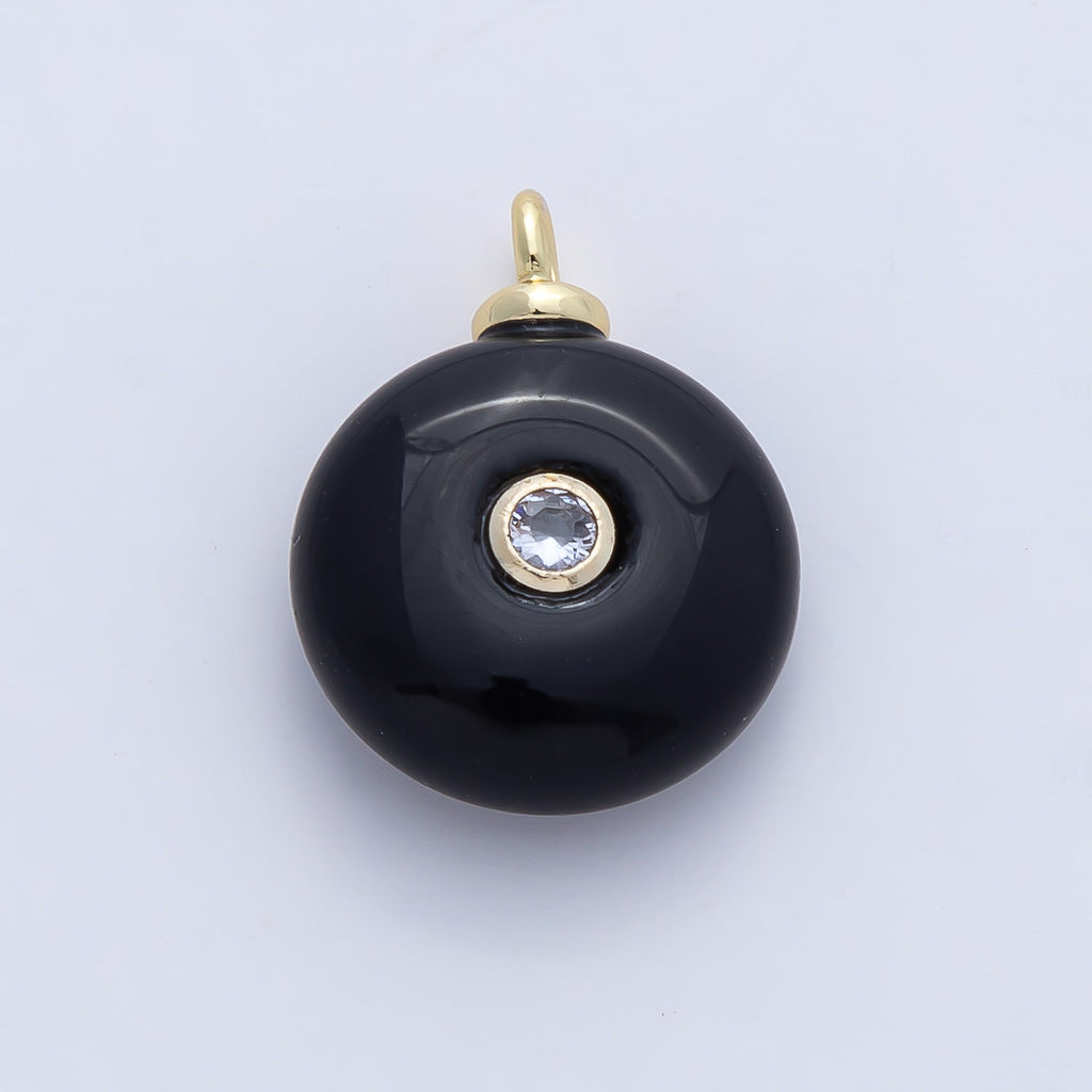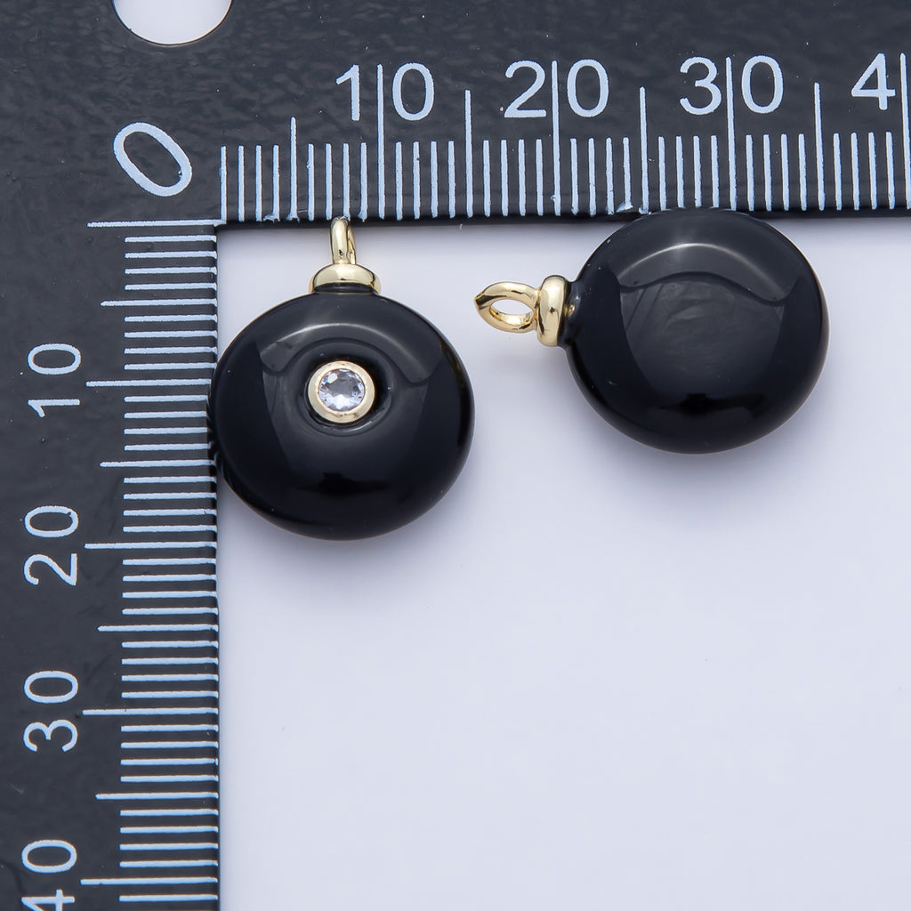 18K Gold Filled 20mm Clear CZ Black Onyx Round Gemstone Charm | AF1471
