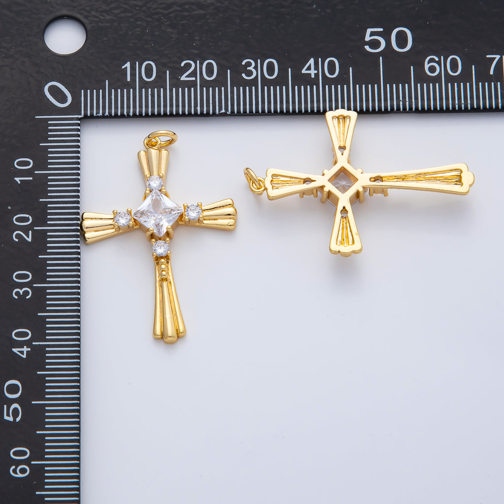 18K Gold Filled 35mm CZ Ribbed Lined Religious Cross Charm | AF1467