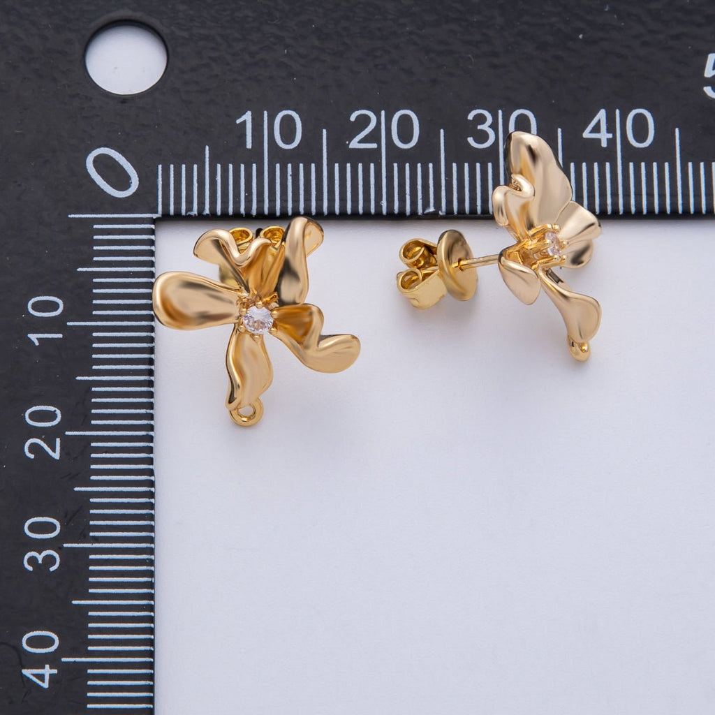 18K Gold Filled 40mm Clear CZ Molten Flower Drop Stud Earrings Findings | Findings-00030