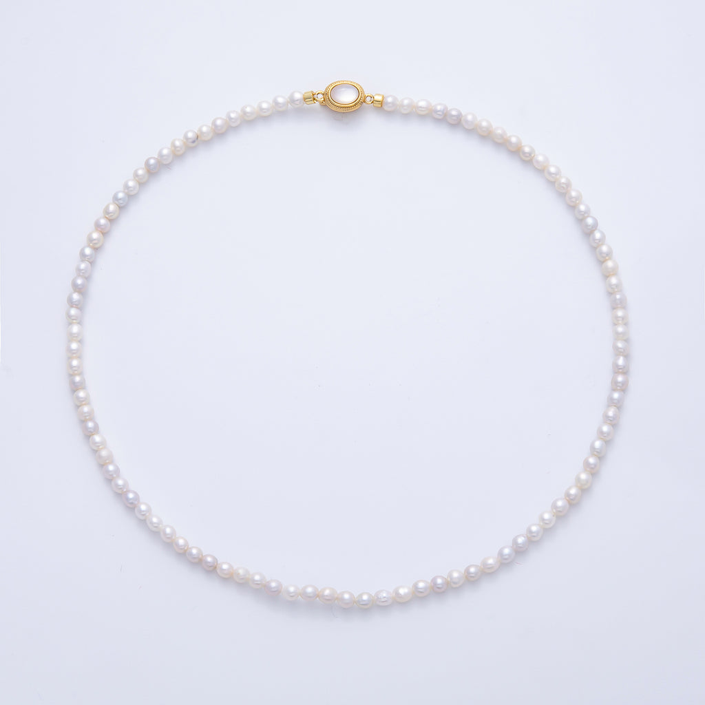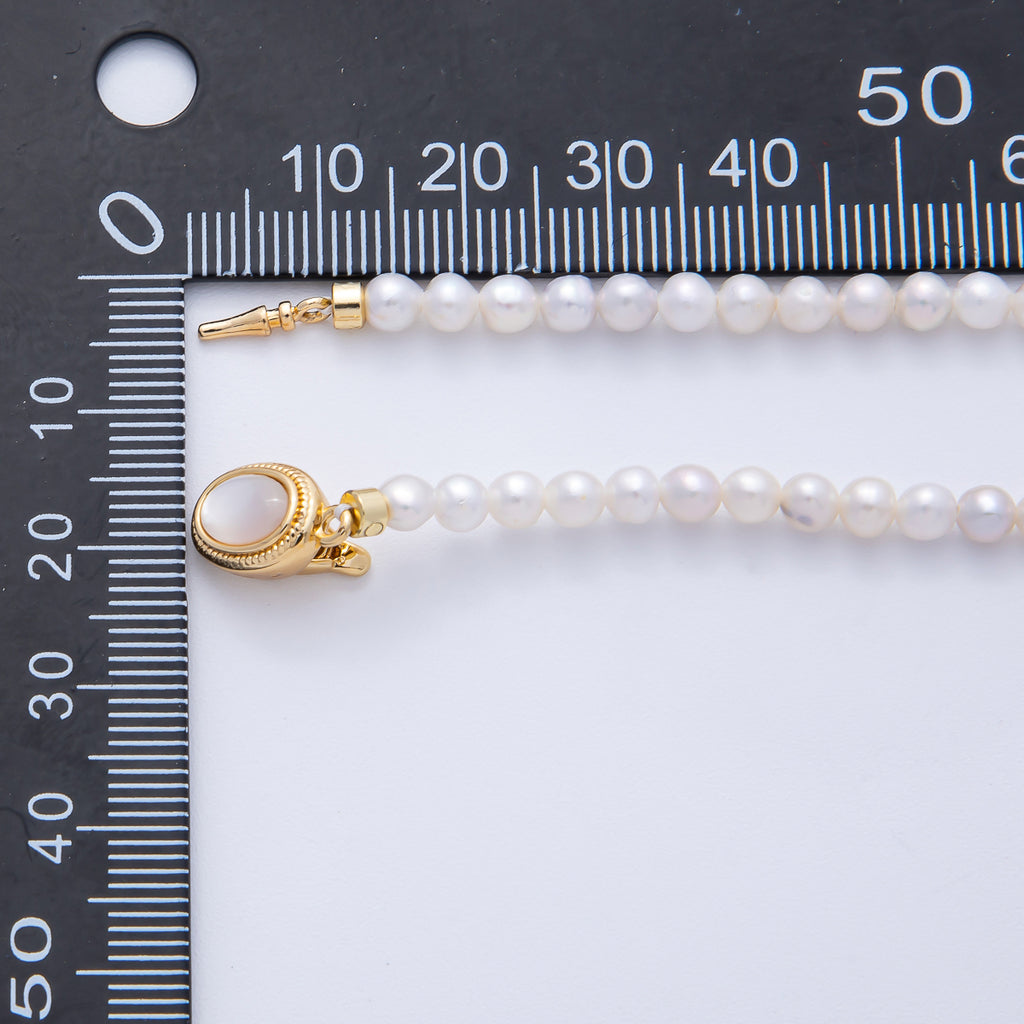 18K Gold Filled 4mm White Shell Pearl Round Oval Push Needle Closure 16 Inch Choker Necklace | WA-4075