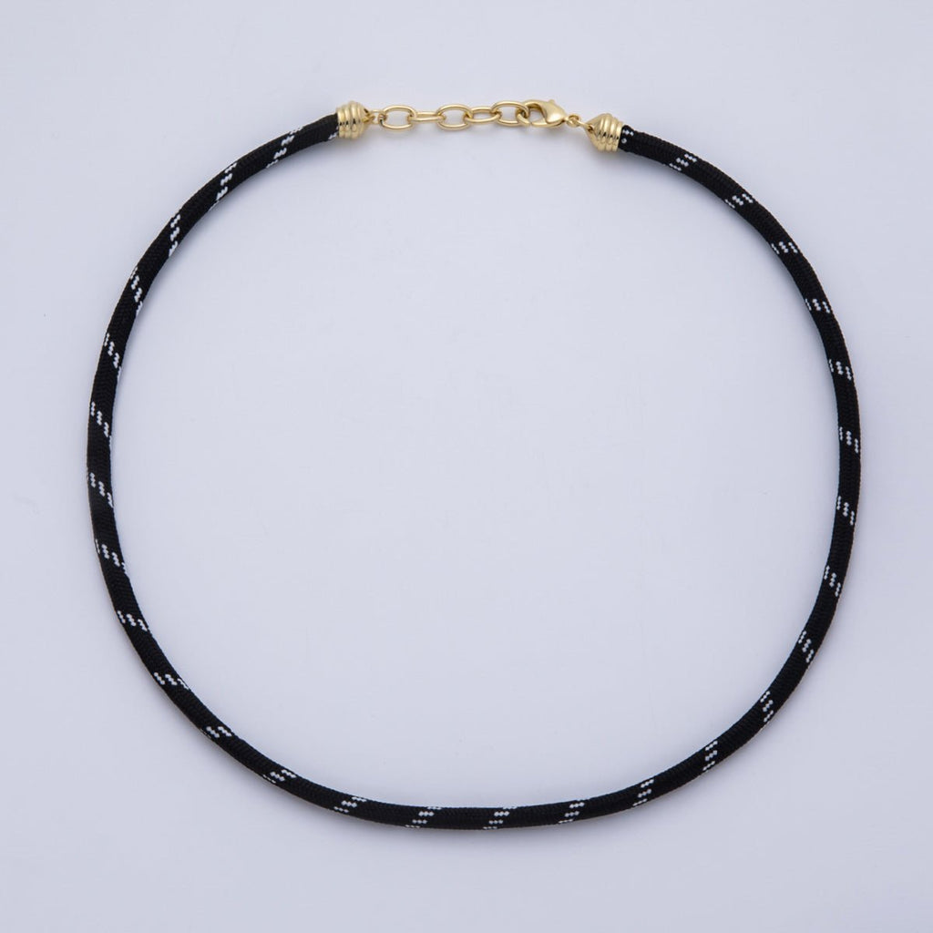 18K Gold Filled 5mm Black Summer Sport Cord Chain 19.5 Inch Necklace with Extender | WA-4077
