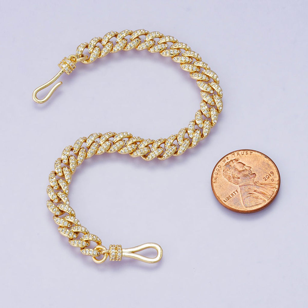 18K Gold Filled 6.3mm Micro Paved CZ Curb Chain 6.8 Inch Bracelet | WA-04191