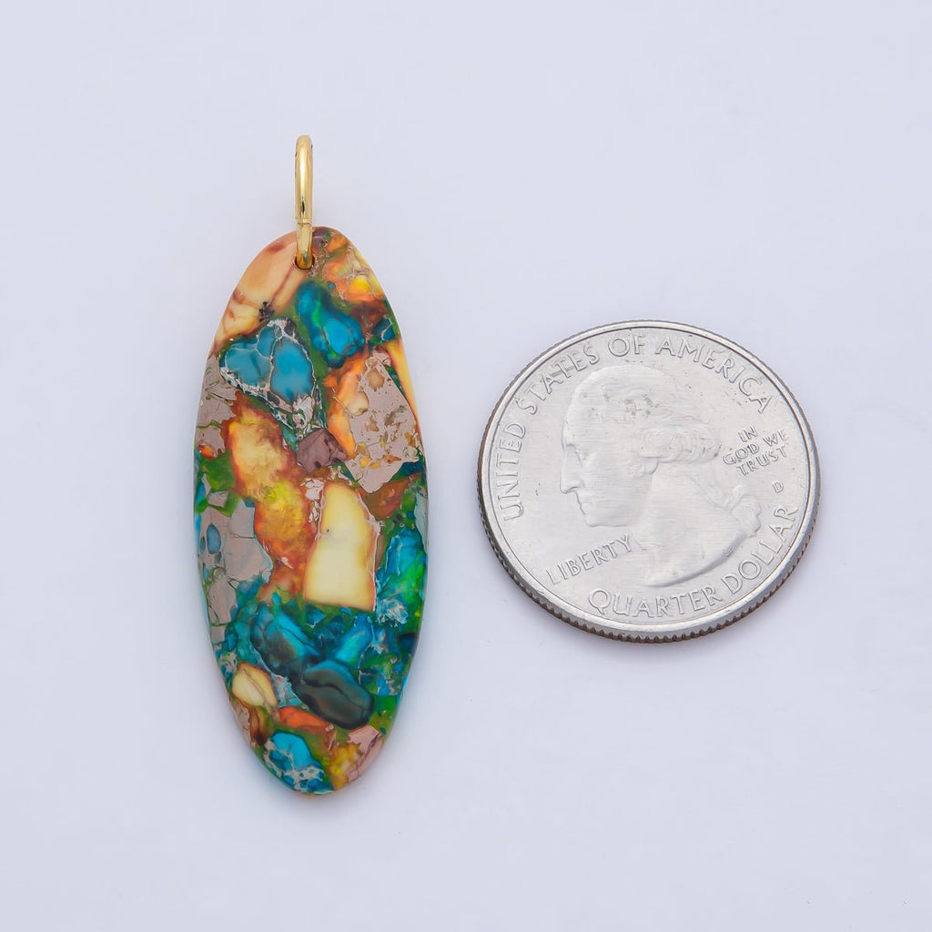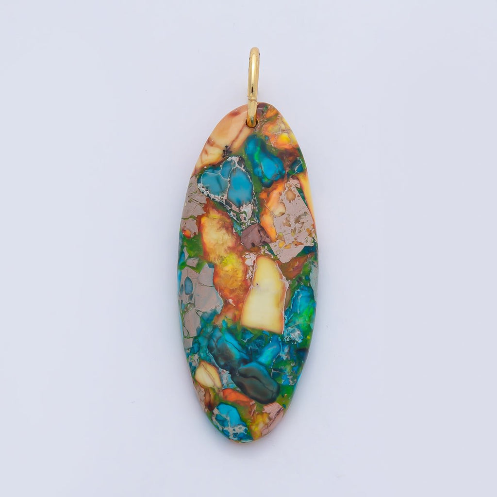 18K Gold Filled Boho Natural Oval Gemstone Pendant – Green, Brown & Multicolor Stone Charms AF1593