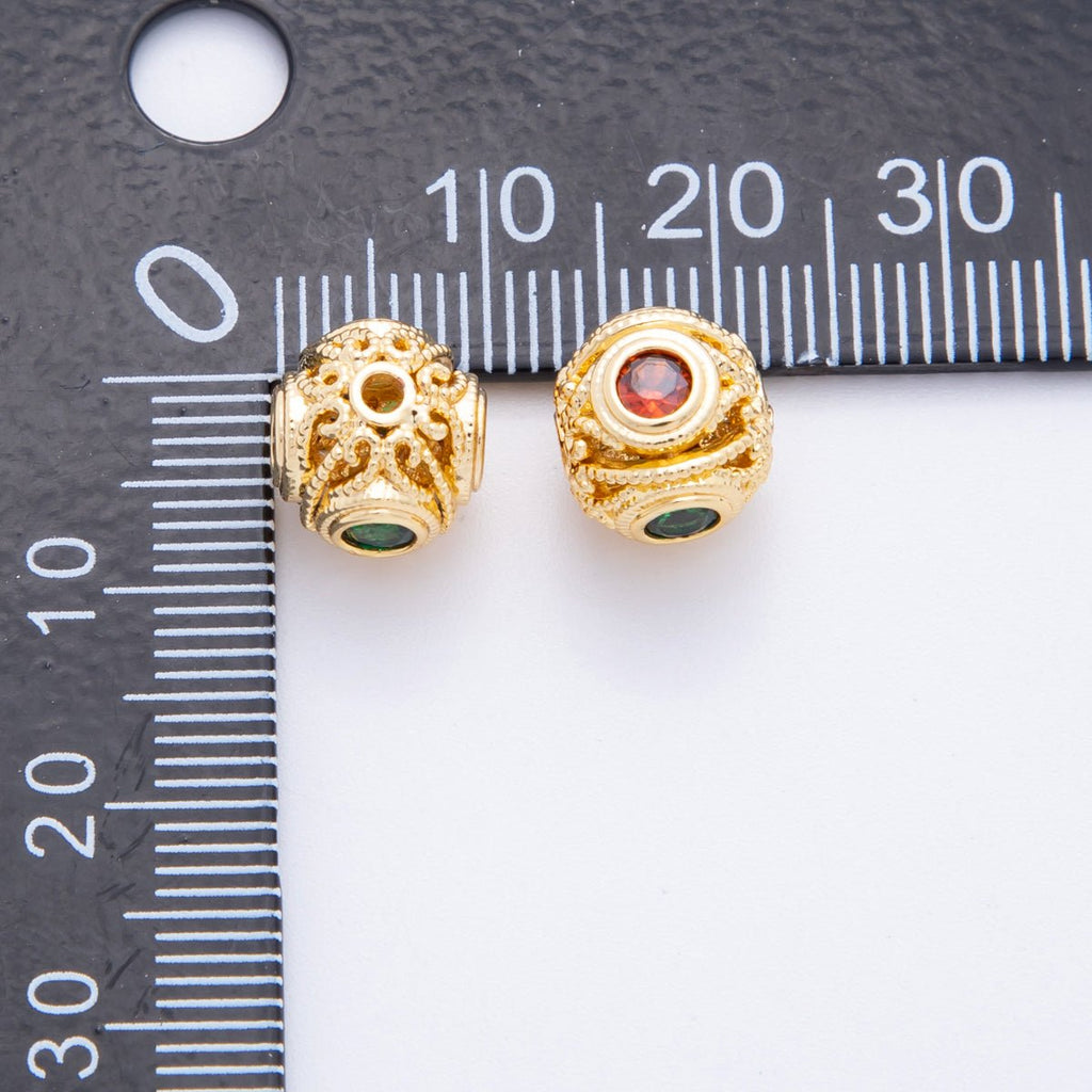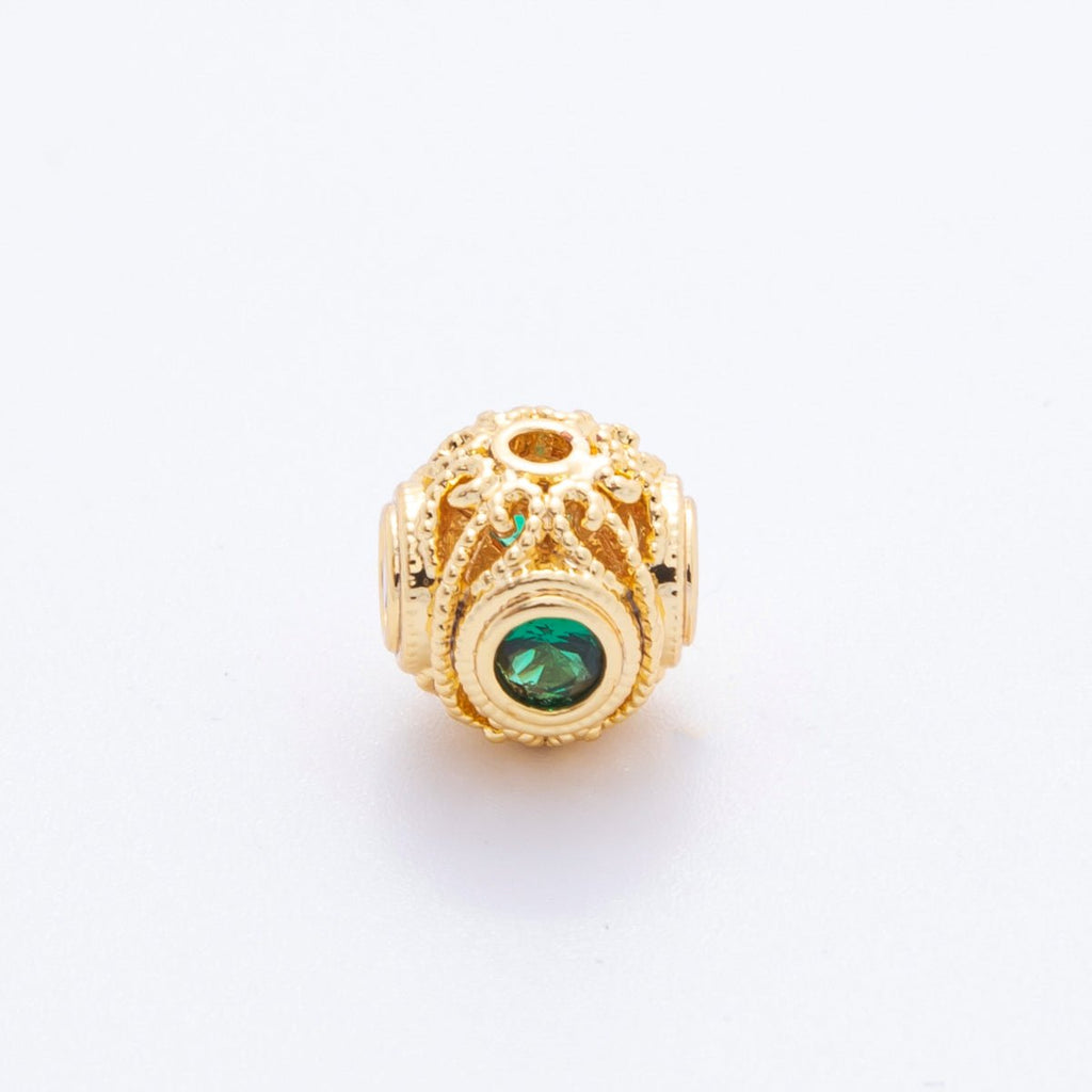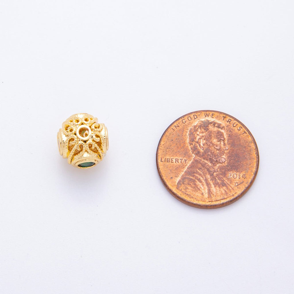 18K Gold Filled Green CZ Filigree Geometric Round Bead Spacer | AF1038