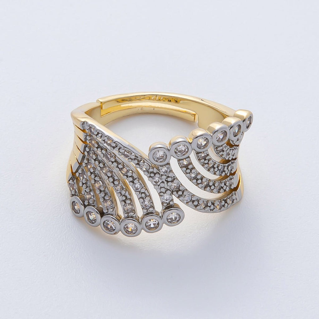18K Gold Filled Mixed Metal Micro Paved CZ Bezel Wrap Ring | O752