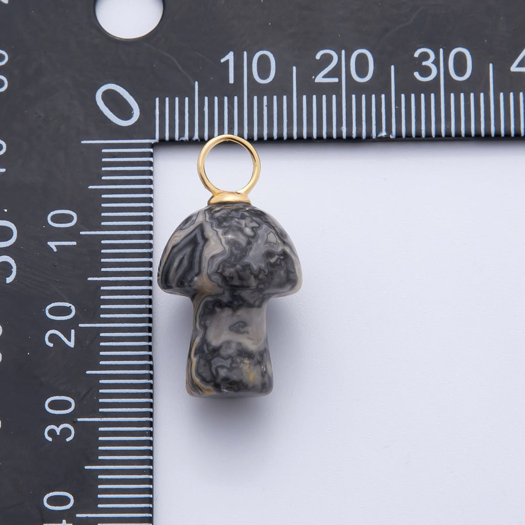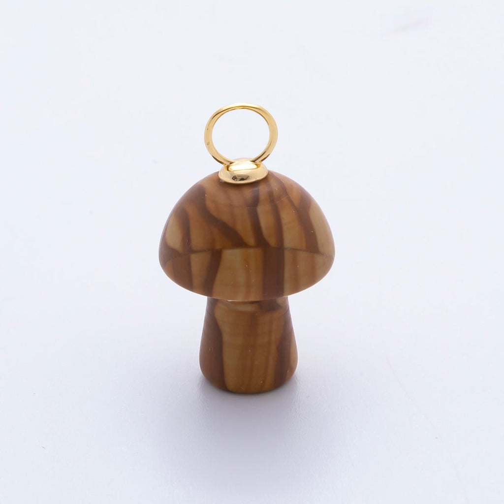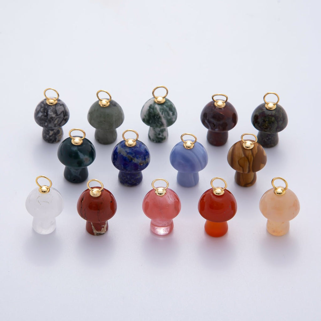 18K Gold Filled Natural Gemstone Mushroom Drop Charm | E404 - E416