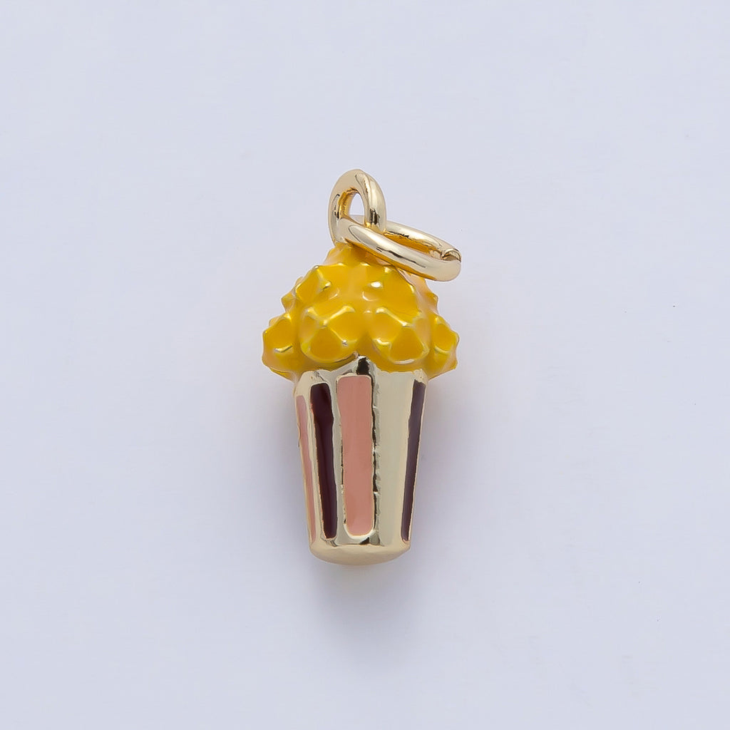 18K Gold Filled Popcorn Snack Enamel Multidimensional 3D Charm | AF1473