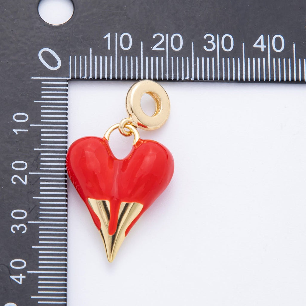 18K Gold Filled Red Enamel Chubby Heart Rondelle Drop Charm | E715