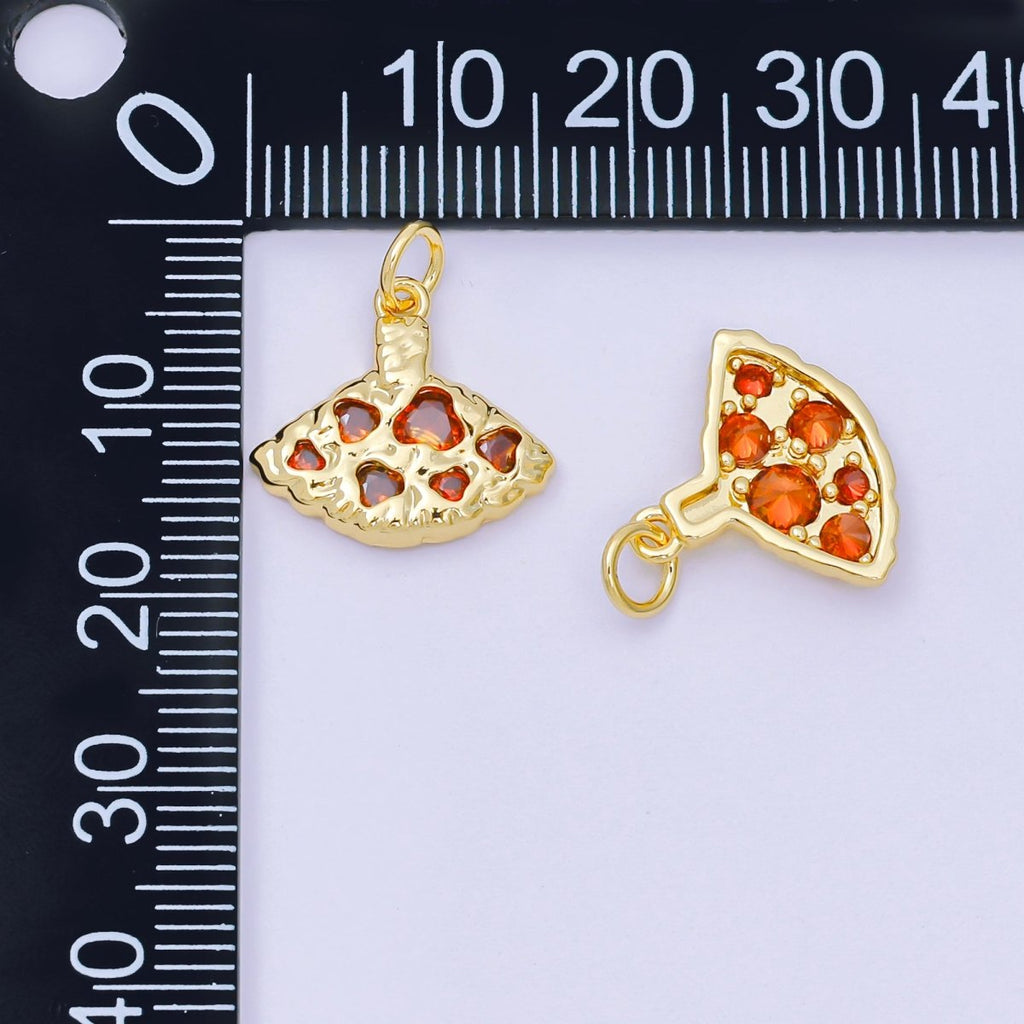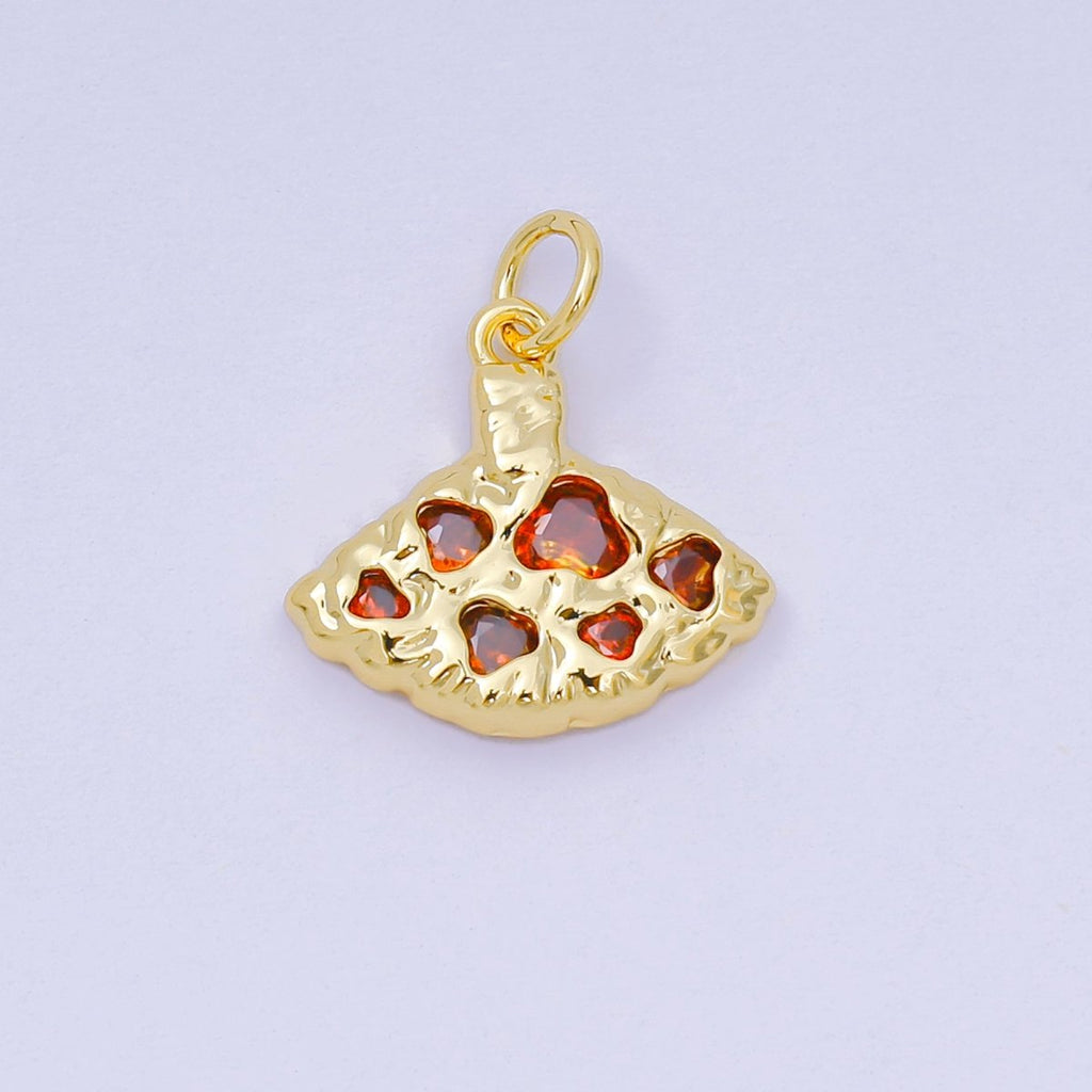 24K Gold Filled Red CZ Pizza Slice Scallop Hammered Geometric Charm | AH679