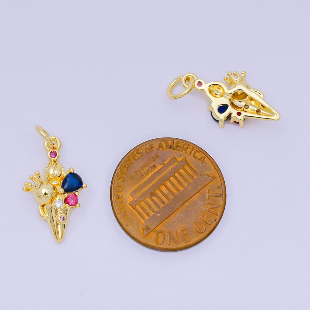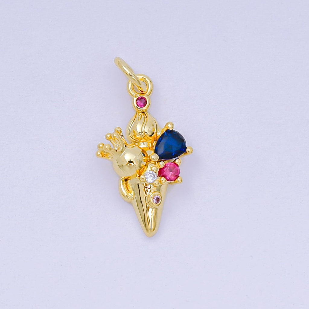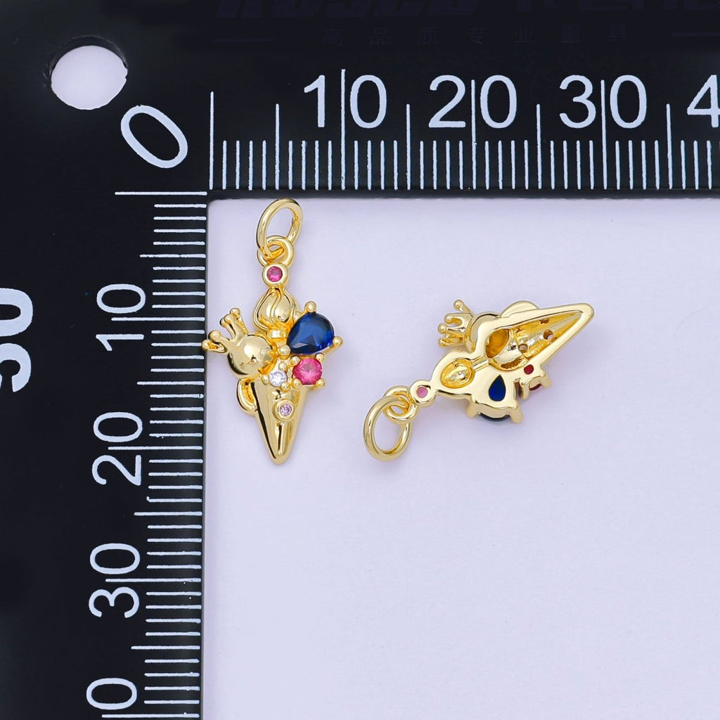 24K Gold Filled 17mm Blue Fuchsia CZ Palace Theme Crown Ice Cream Charm | D-284