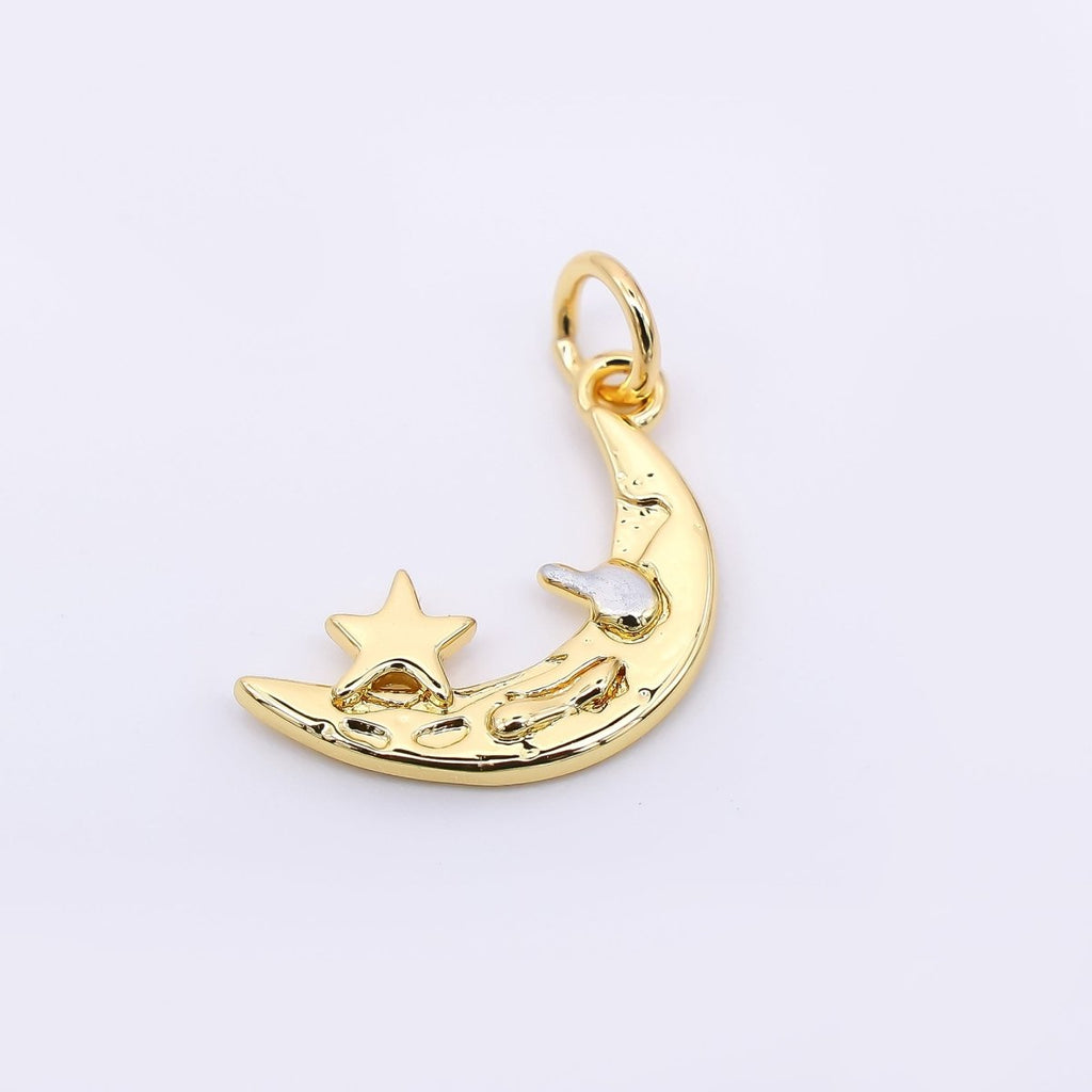 24K Gold Filled 17mm Crescent Good Night Moon Star Charm | AF-518