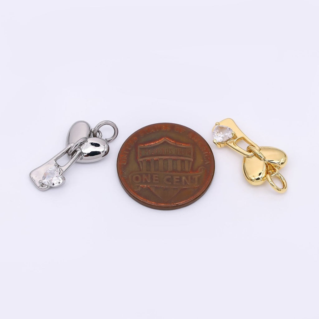 24K Gold Filled Clear CZ Heart Key Padlock Drop Charm in Gold & Silver | M580