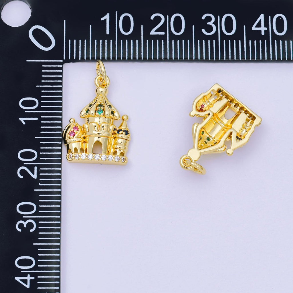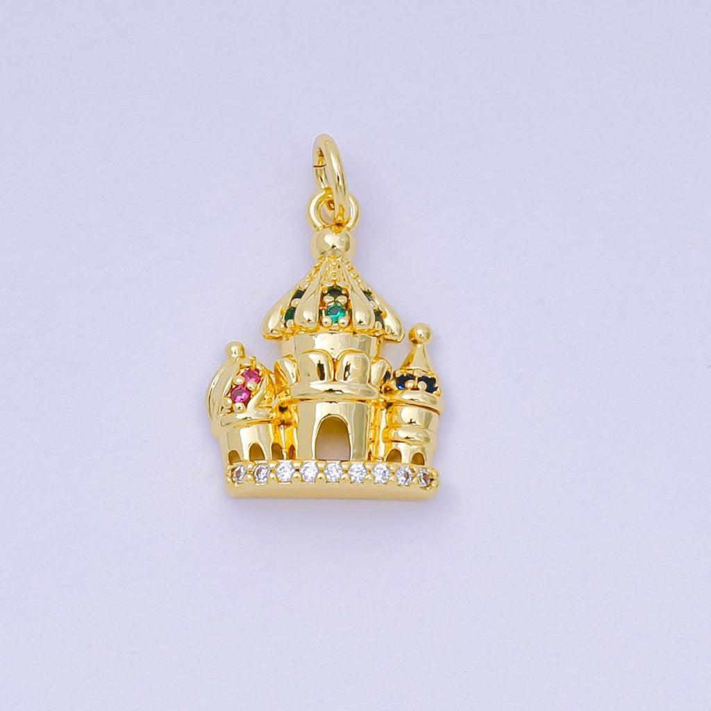 24K Gold Filled Multicolor CZ Micro Paved Princess Castle Charm | AH680