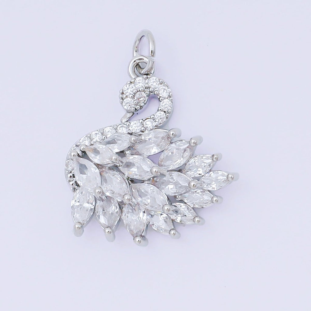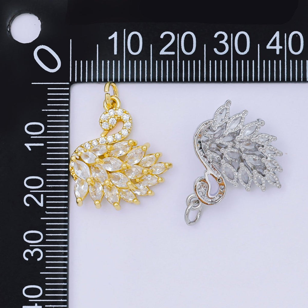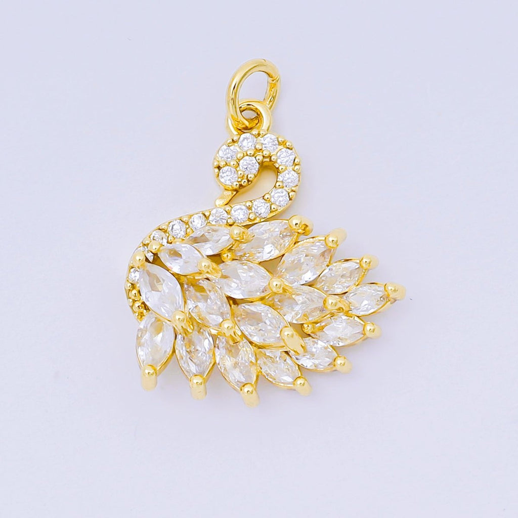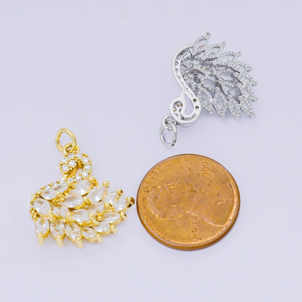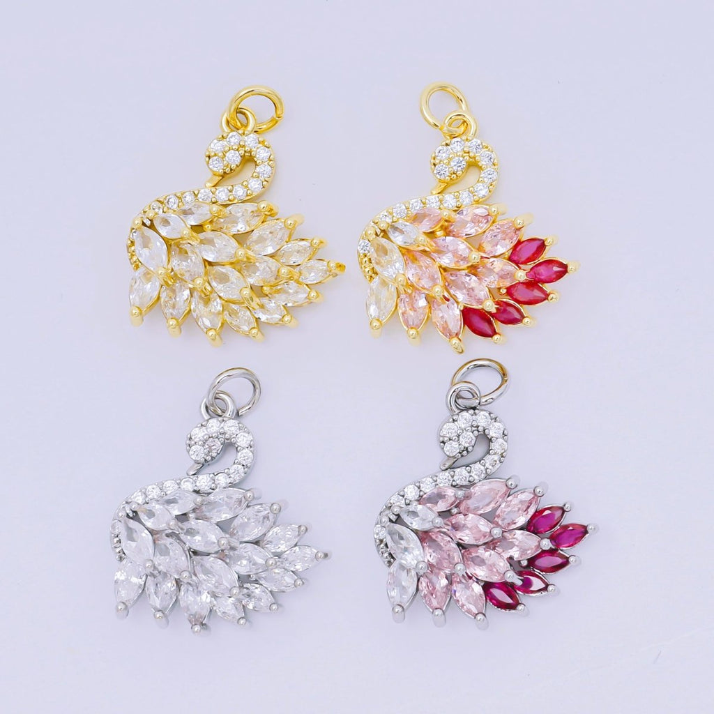 24K Gold Filled Clear, Multicolor CZ Swan Animal Charm in Gold & Silver | D398 M541