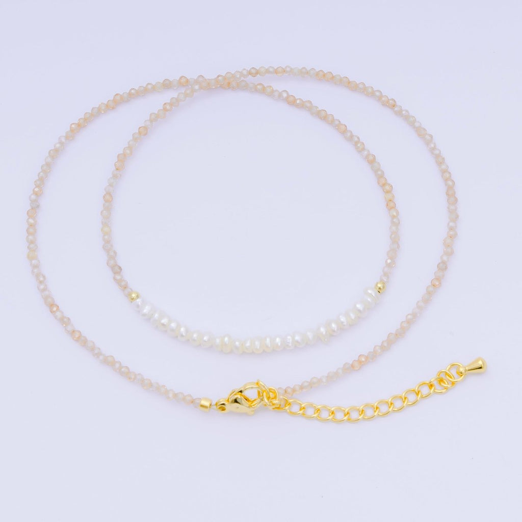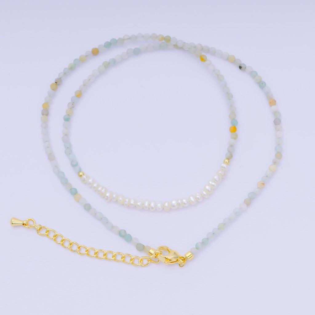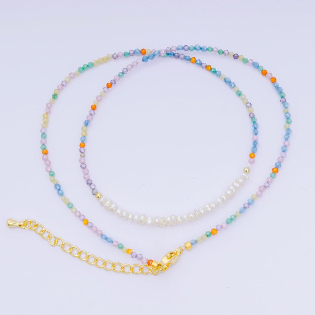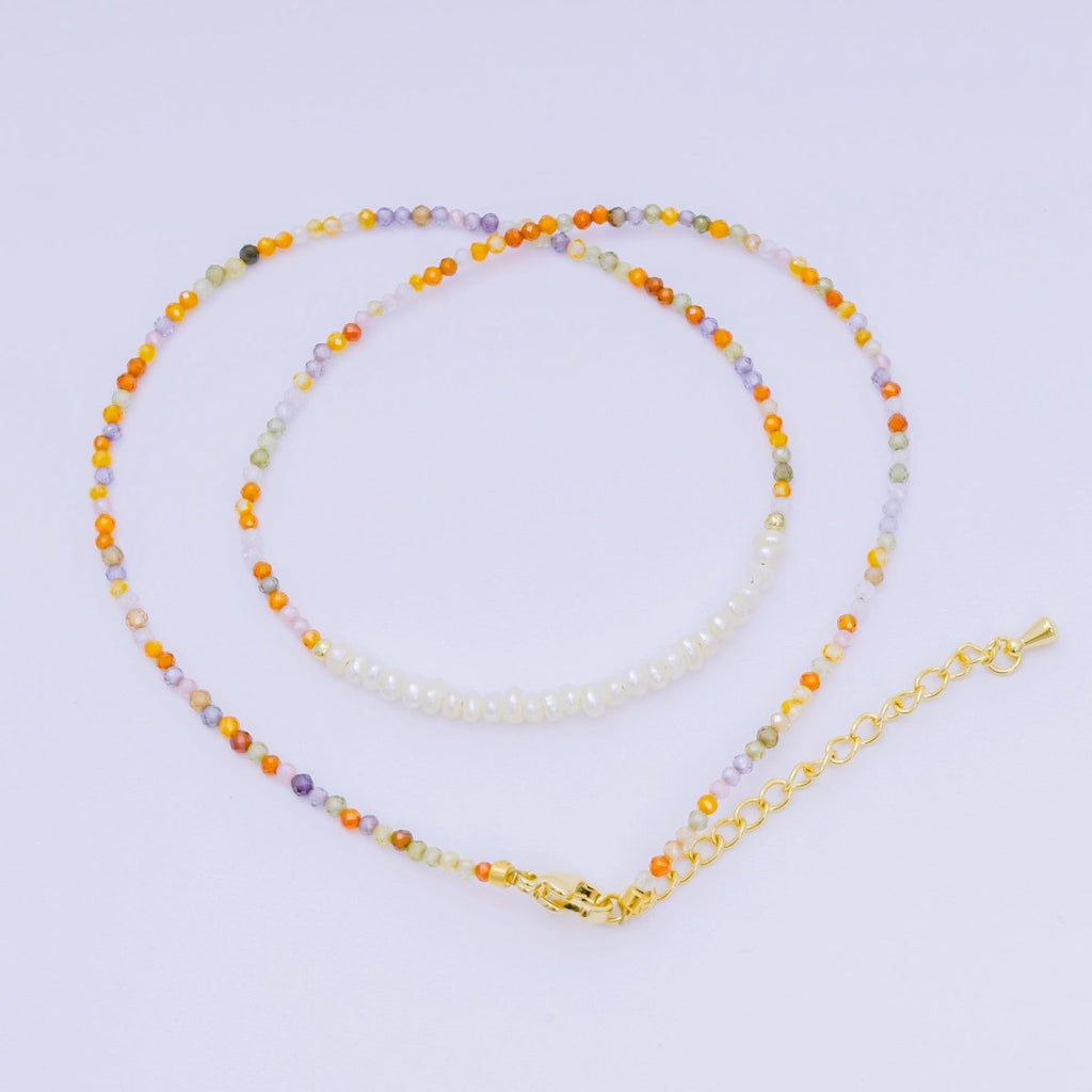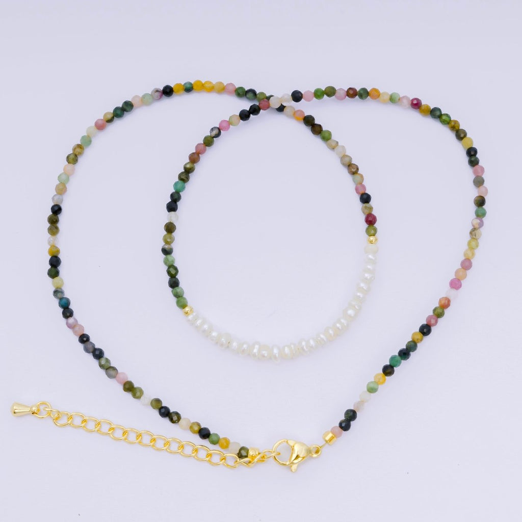 24K Gold Filled Freshwater Pearl Colorful Gemstone Bead Necklace 16.92 Inch with Extender | WA-3668 - WA-3671
