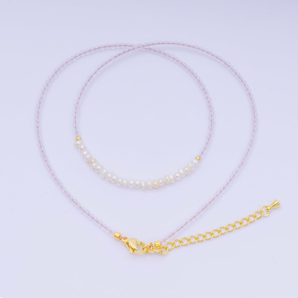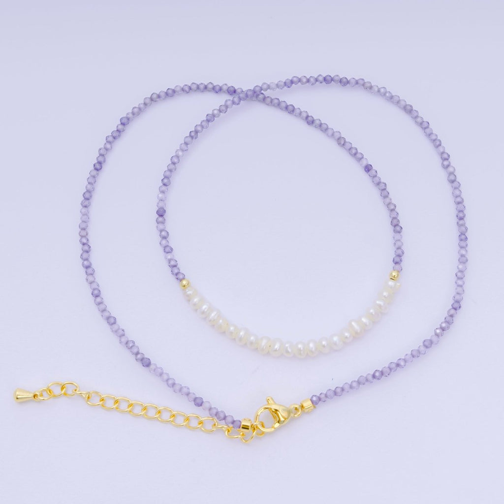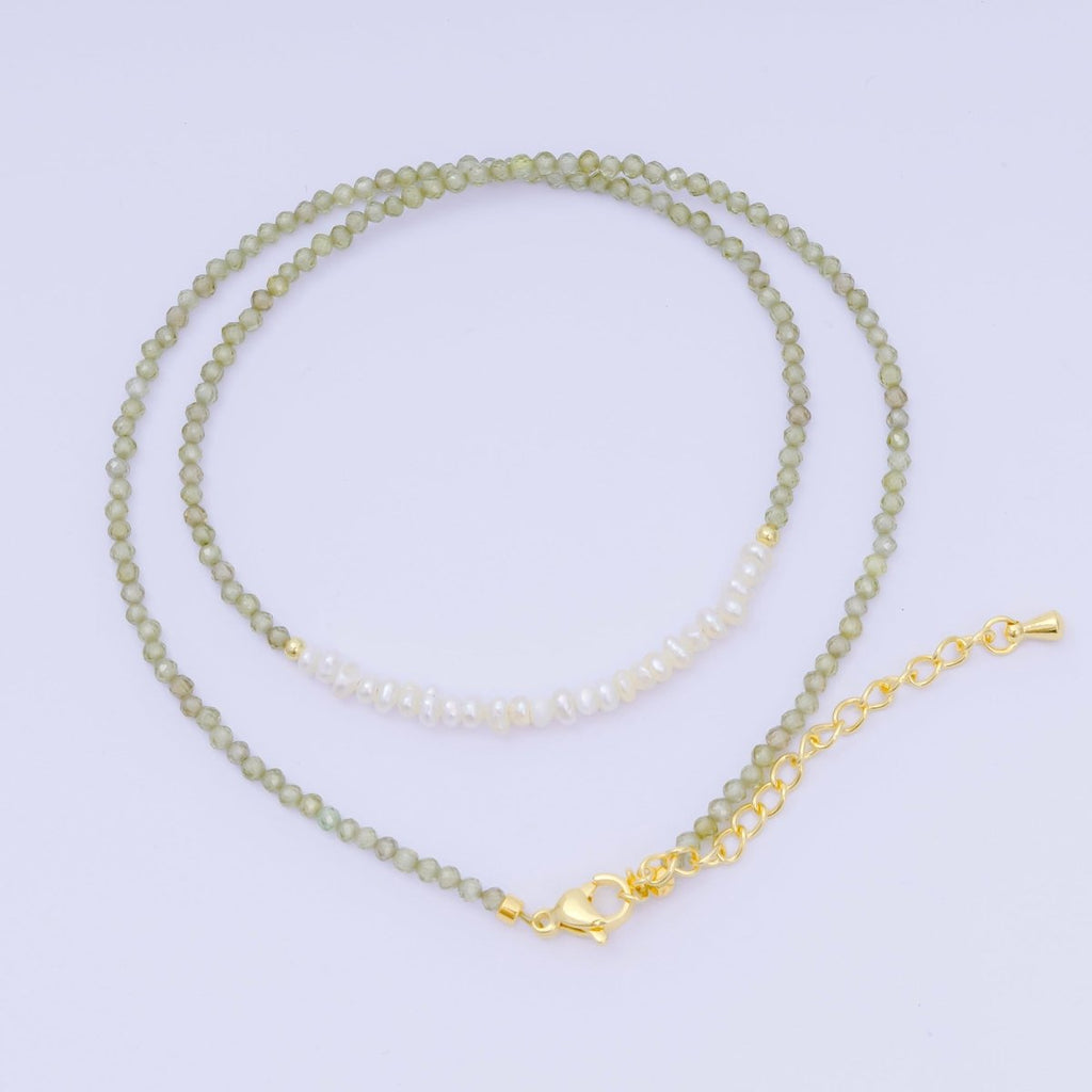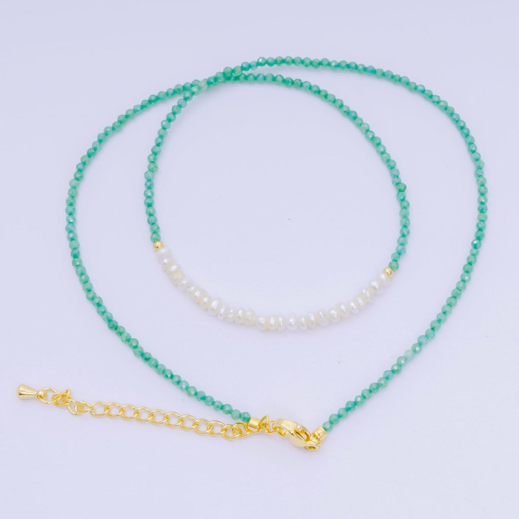 24K Gold Filled Freshwater Pearl Colorful Gemstone Bead Necklace 16.92 Inch with Extender | WA-3668 - WA-3671