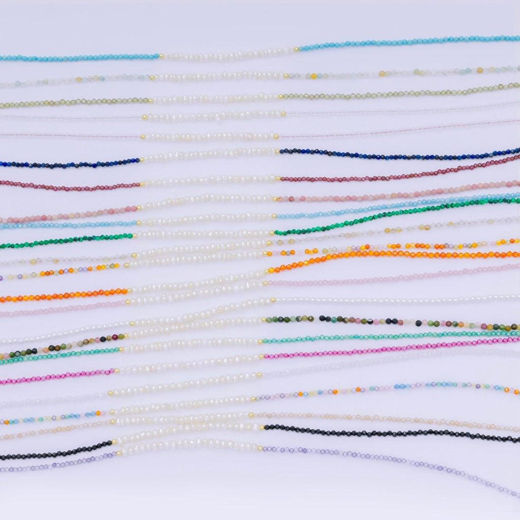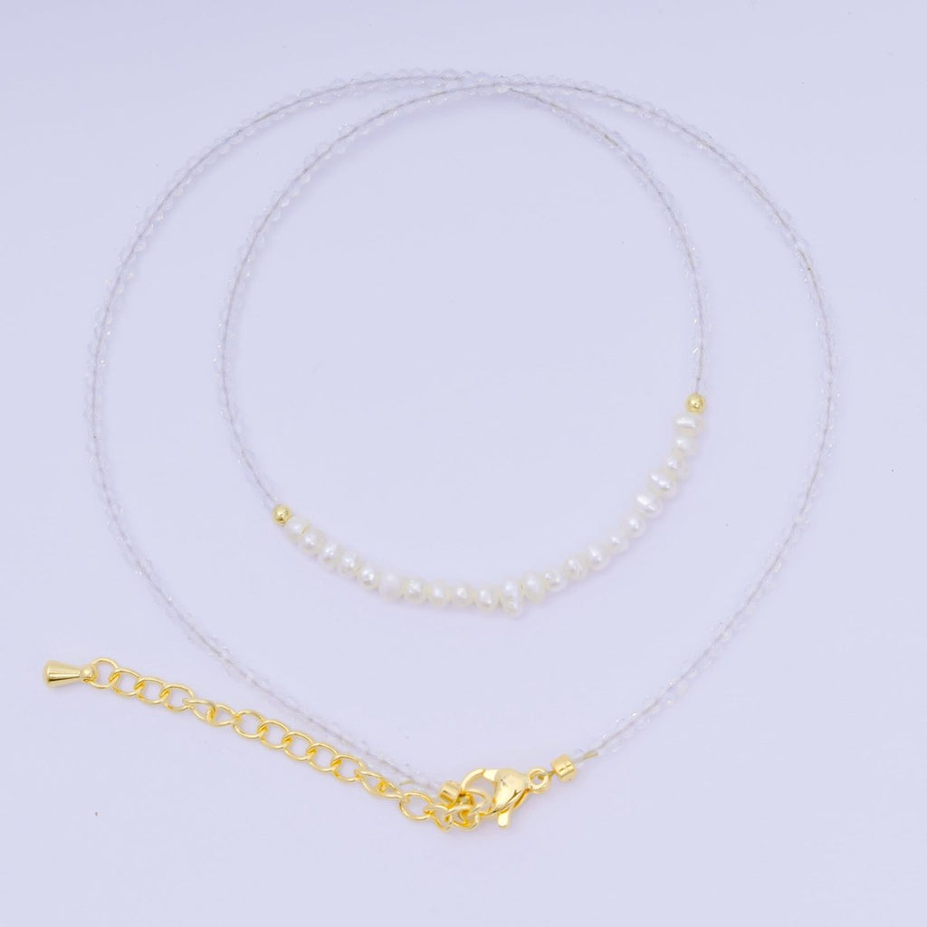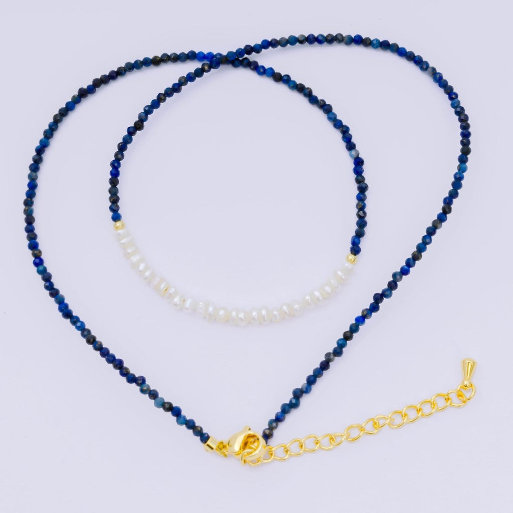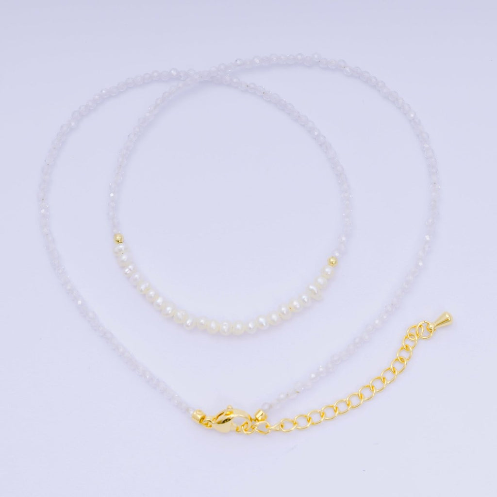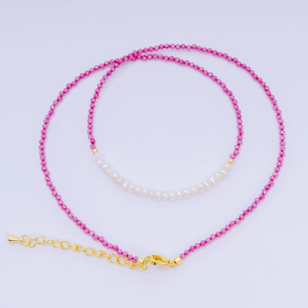 24K Gold Filled Freshwater Pearl Colorful Gemstone Bead Necklace 16.92 Inch with Extender | WA-3668 - WA-3671