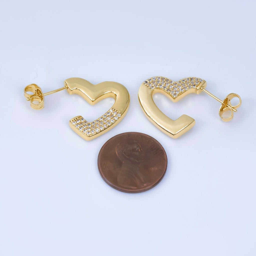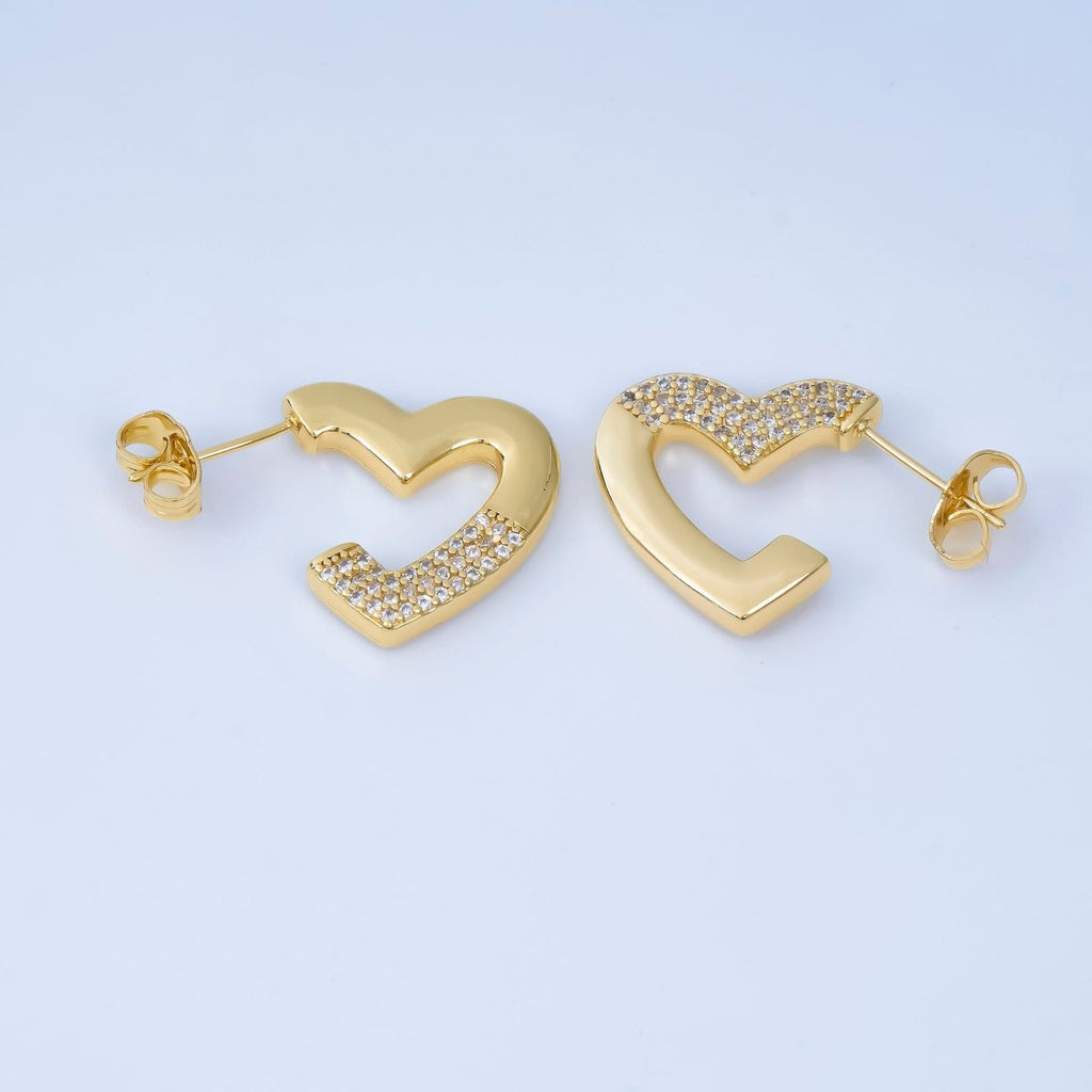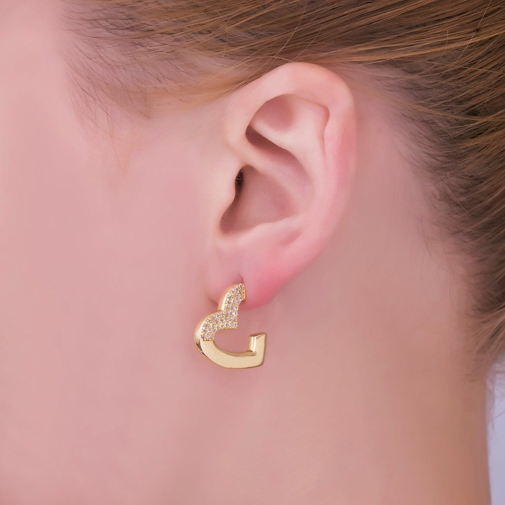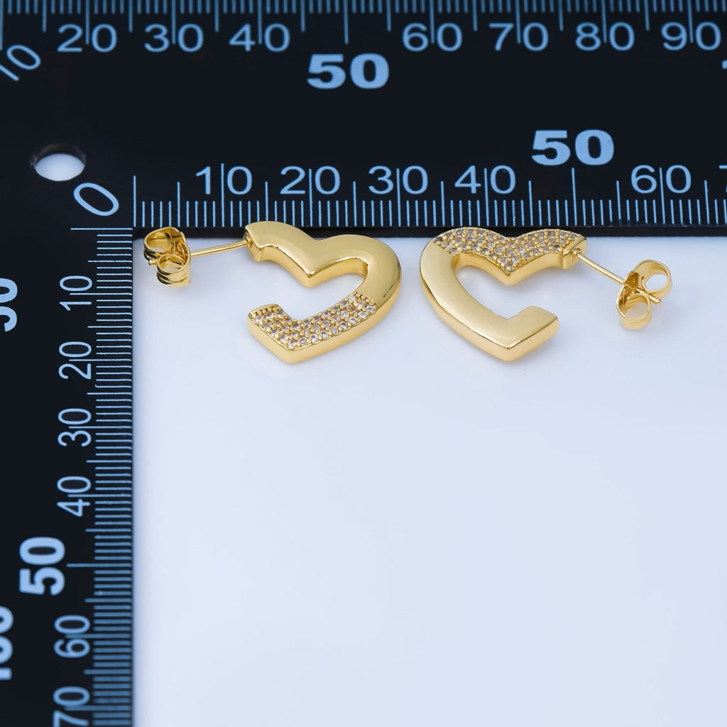24K Gold Filled Micro Paved CZ Incomplete Love Drop Stud Earrings | AJ-049