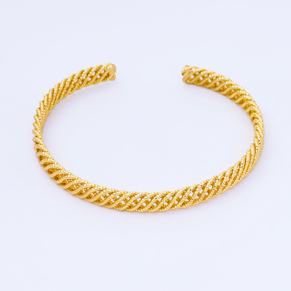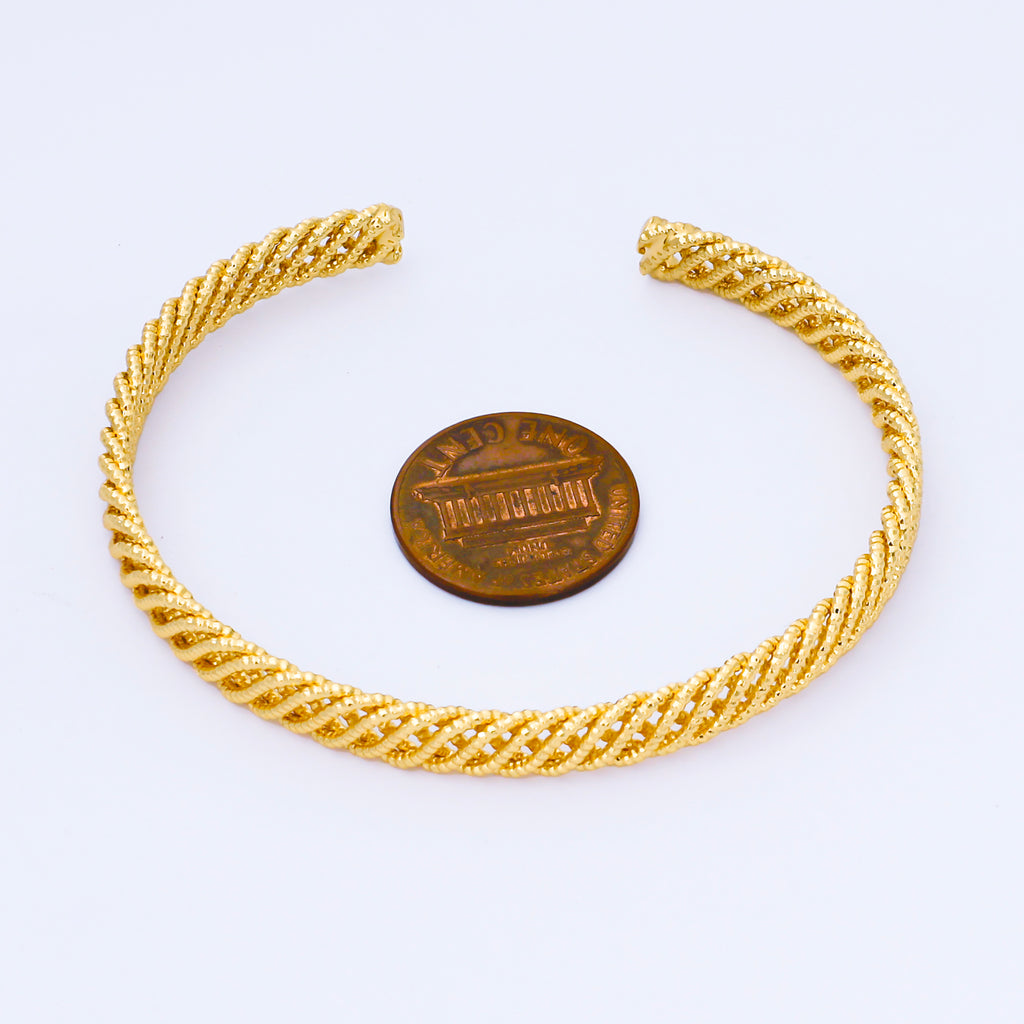 24K Gold Filled Minimalist Twisted Woven Cuff Bangle Bracelet | WA-1686