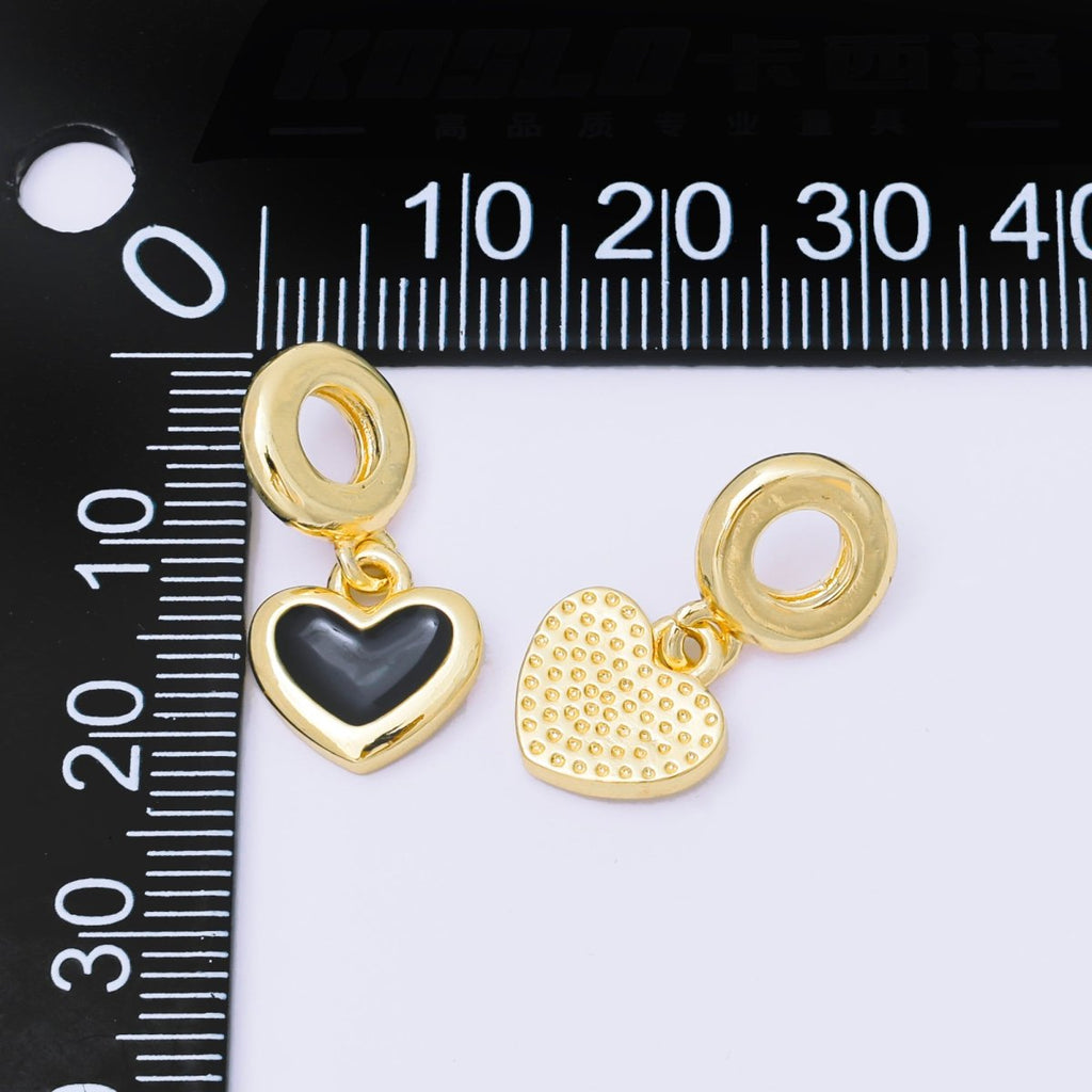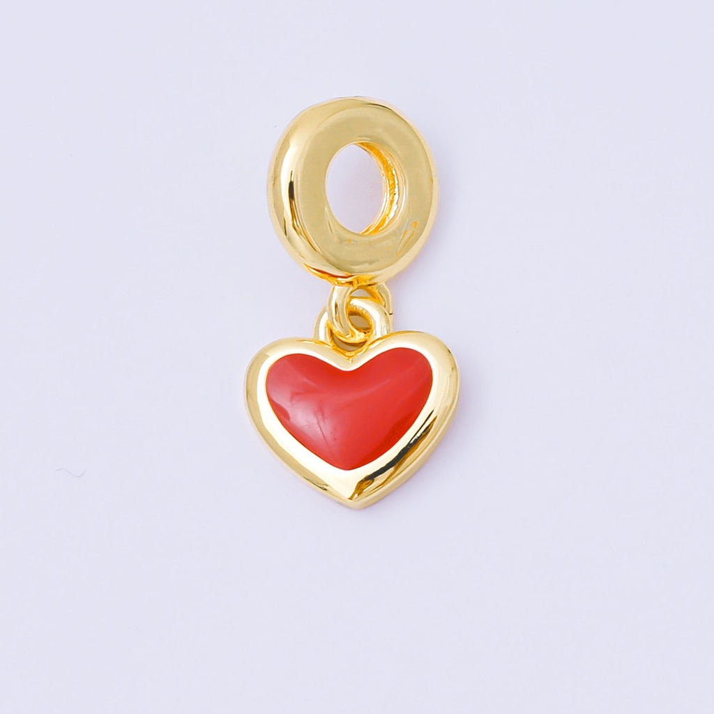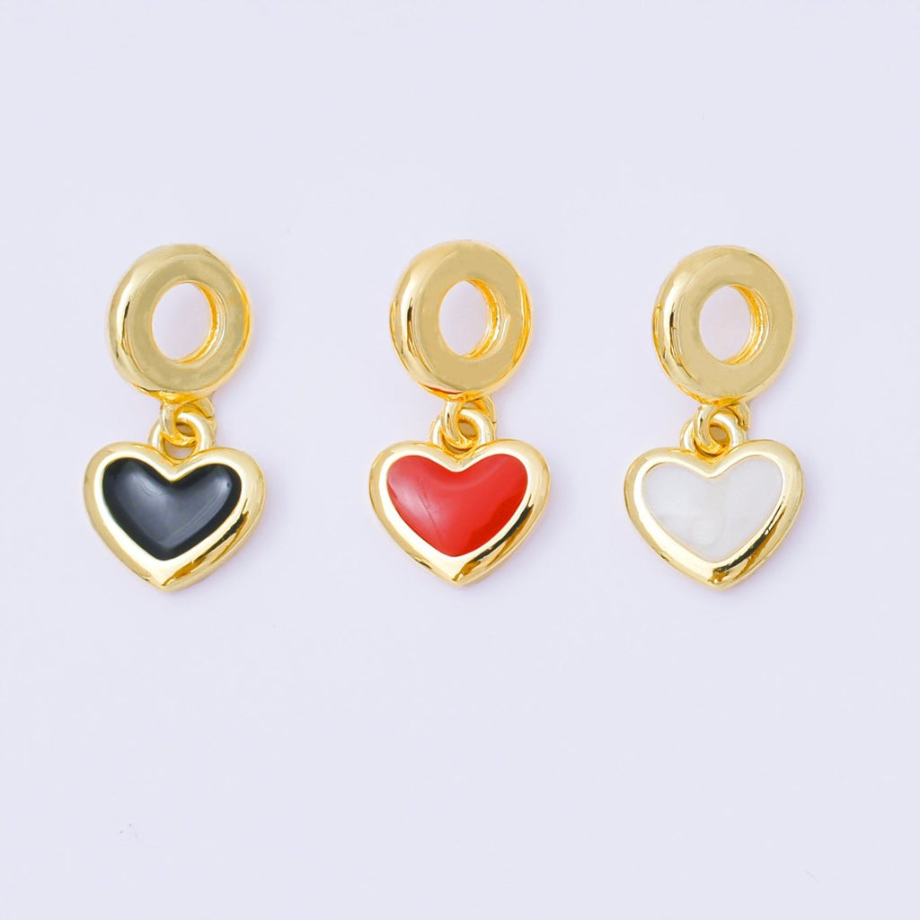 24K Gold Filled 11mm Red, Black, & White Enamel Heart Rondelle Drop Charm | AC1630 AH636