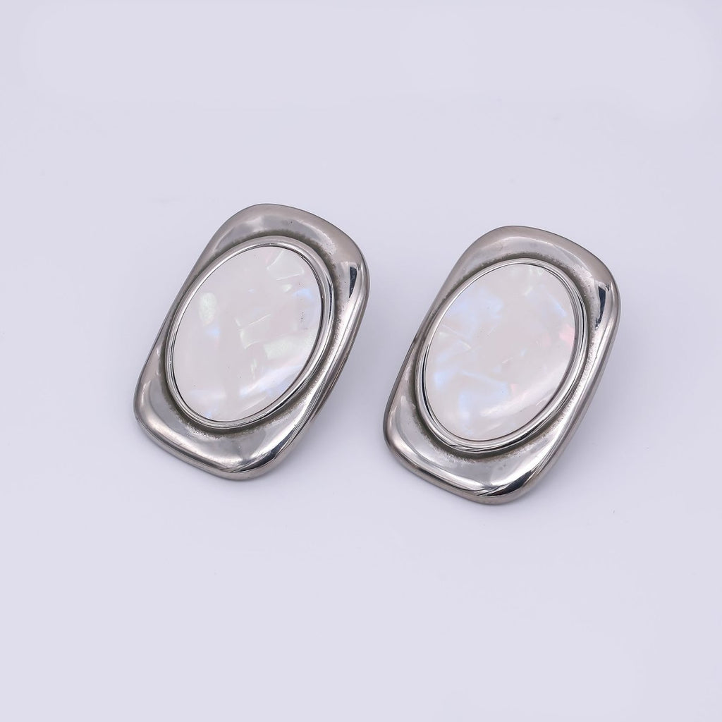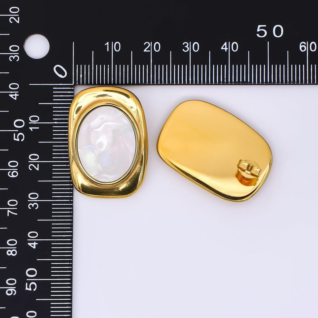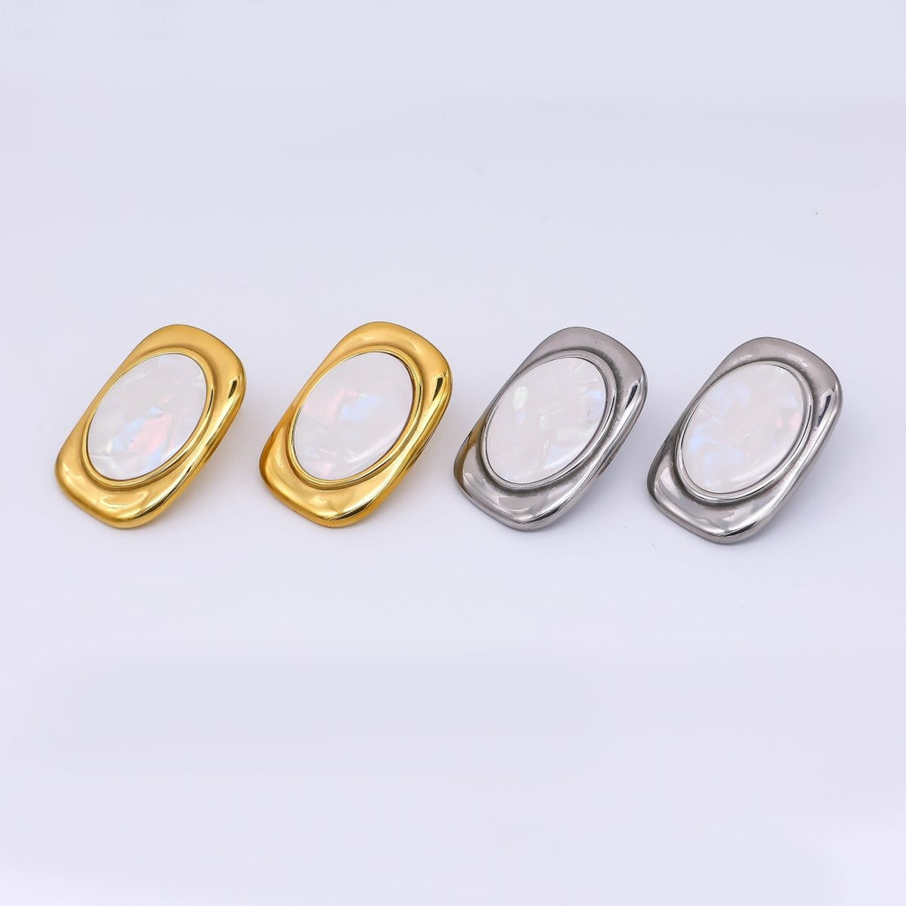 24K Gold Filled Shell Pearl Abstract Modern Stud Earrings in Gold & Silver | AJ-089 AJ-090