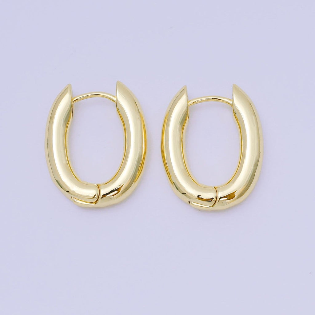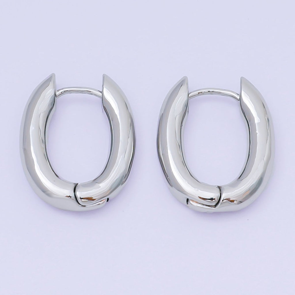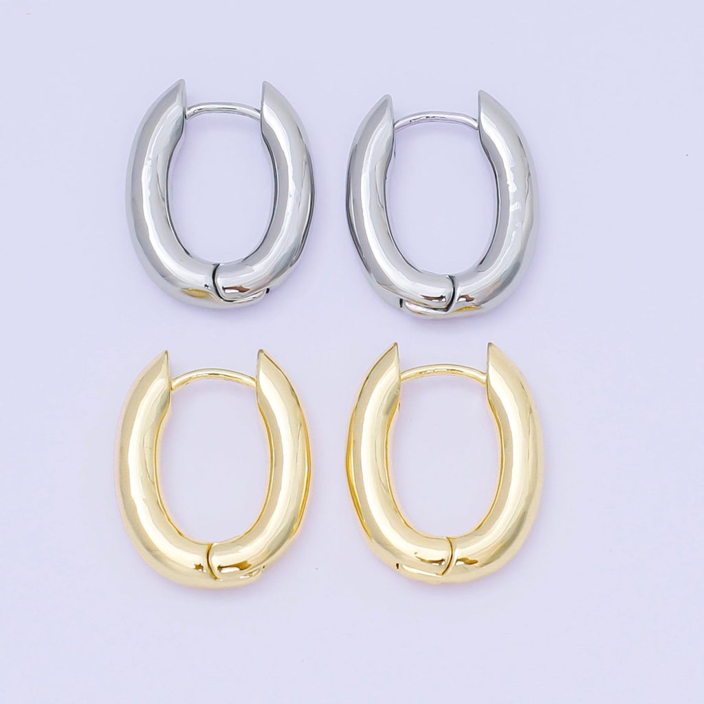 24K Gold Filled 20mm Chubby Oblong Hoop Earrings in Gold & Silver | AJ142 AJ143