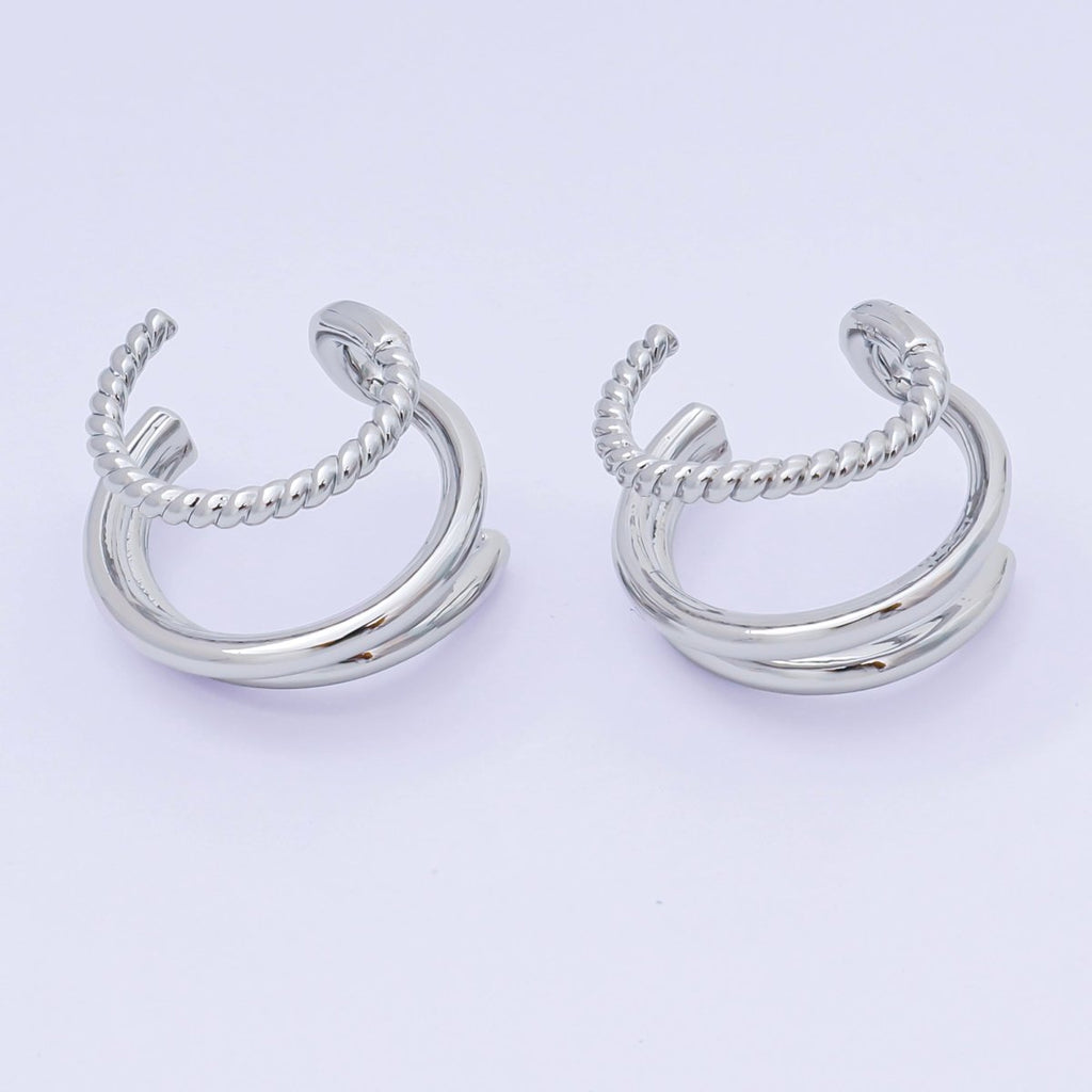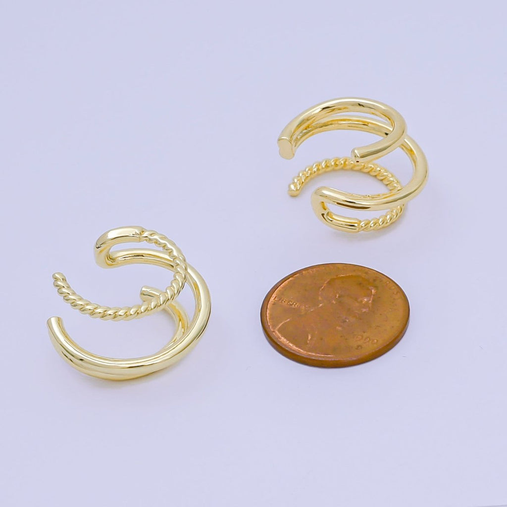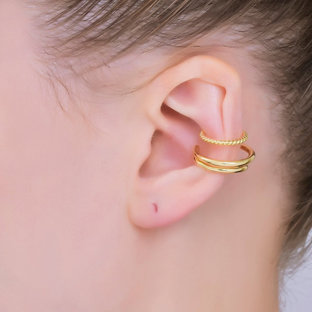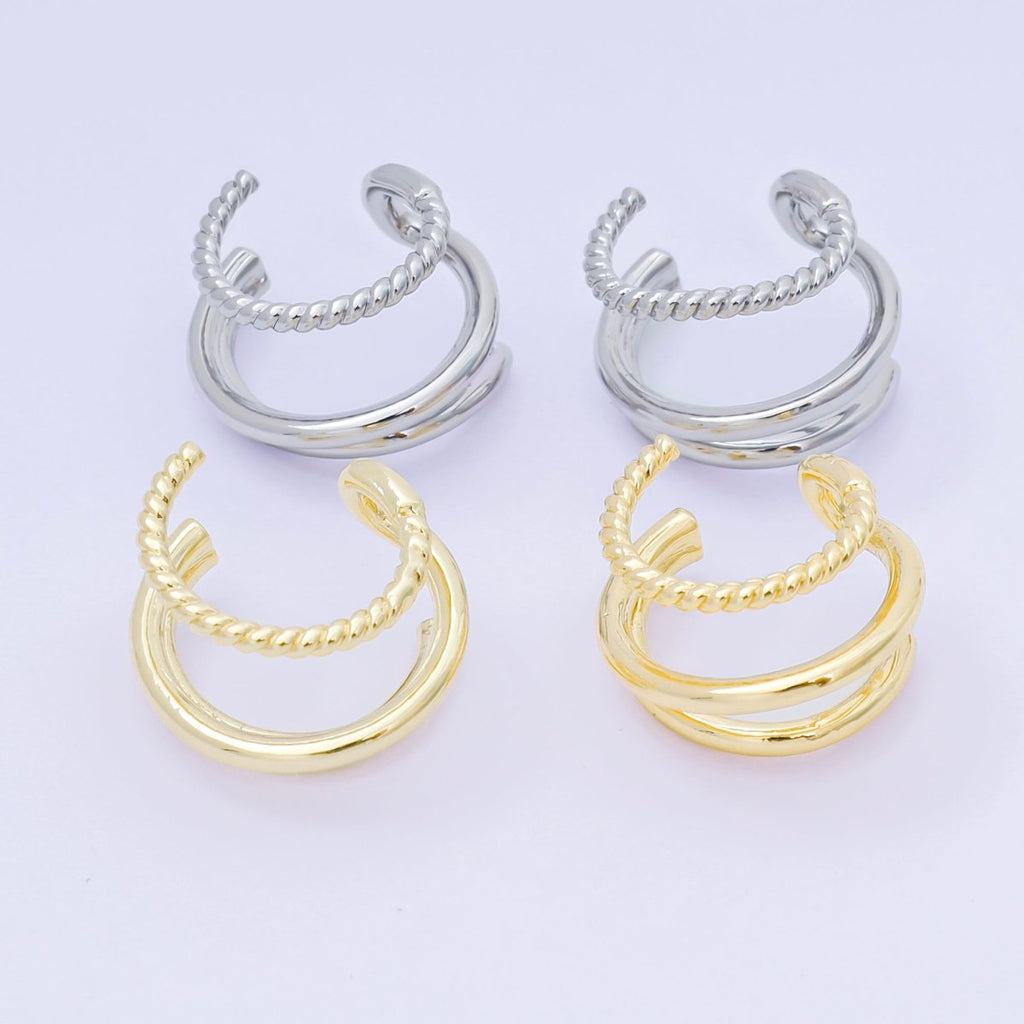 24K Gold Filled Rope Twisted Triple Band Ear Cuff Earrings in Gold & Silver | AI184 AI185
