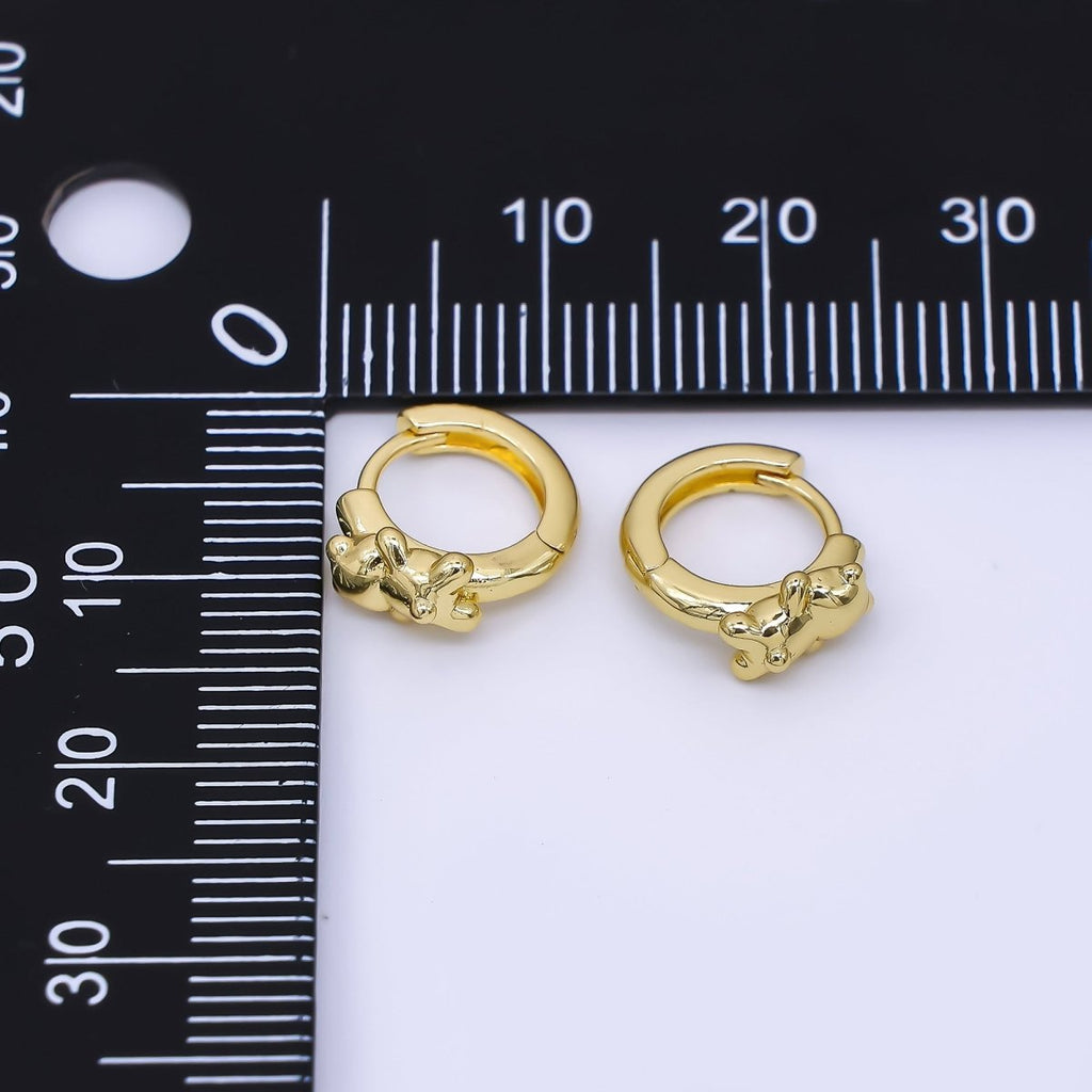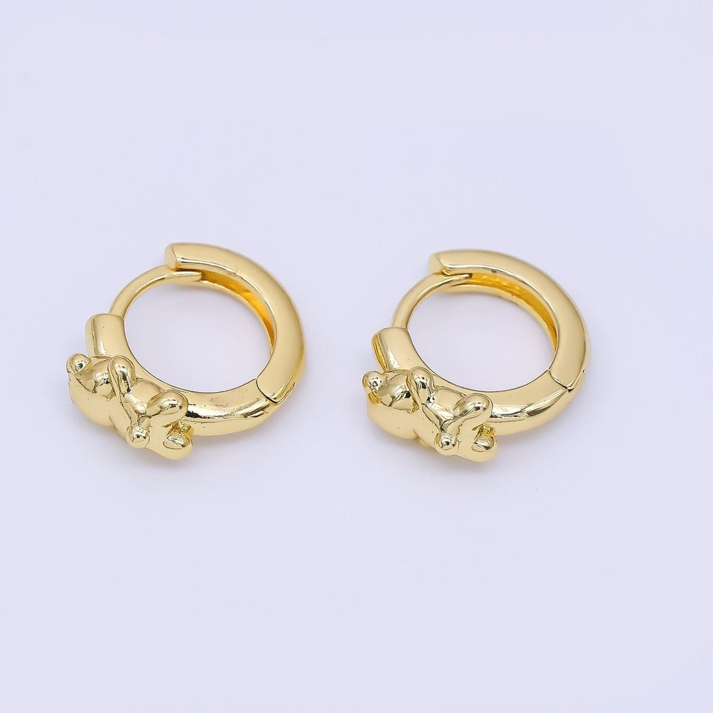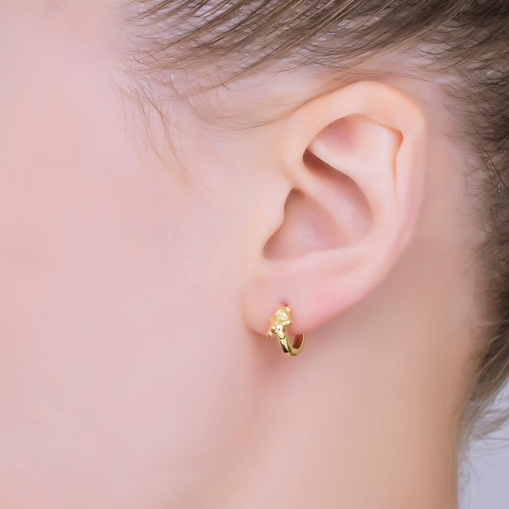 24K Gold Filled Tiny Teddy Bear Animal Lever back Huggie Hoops Earrings | AJ-060