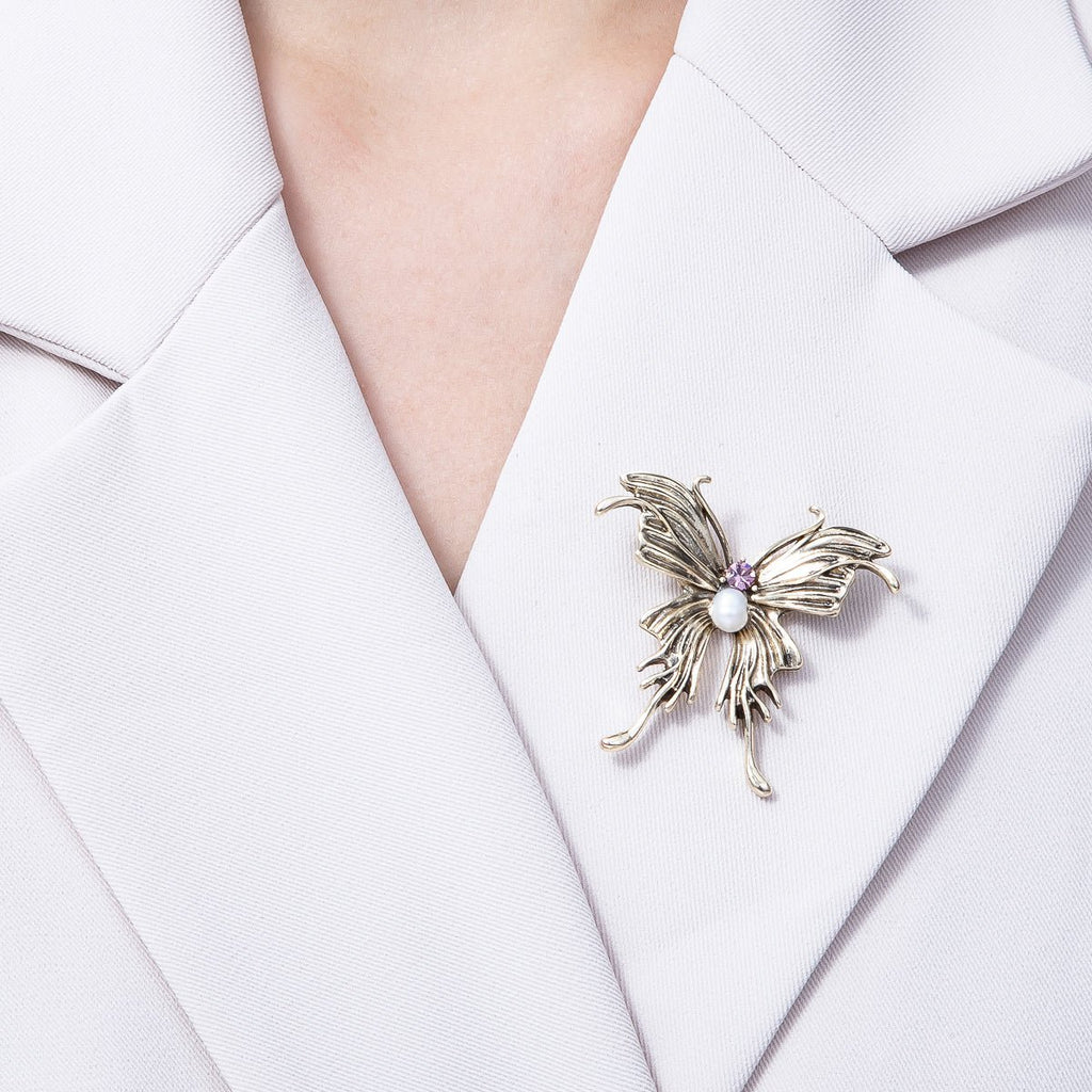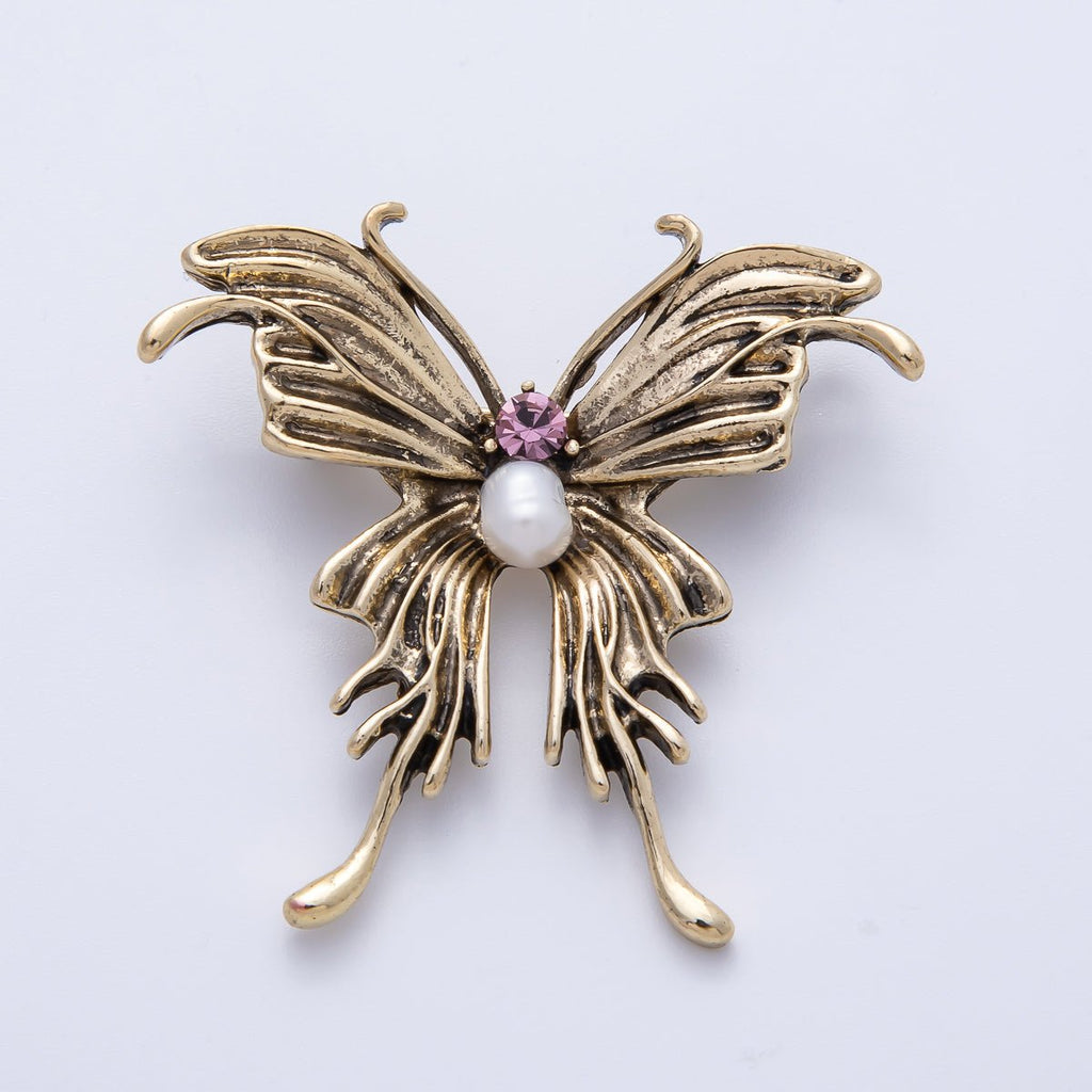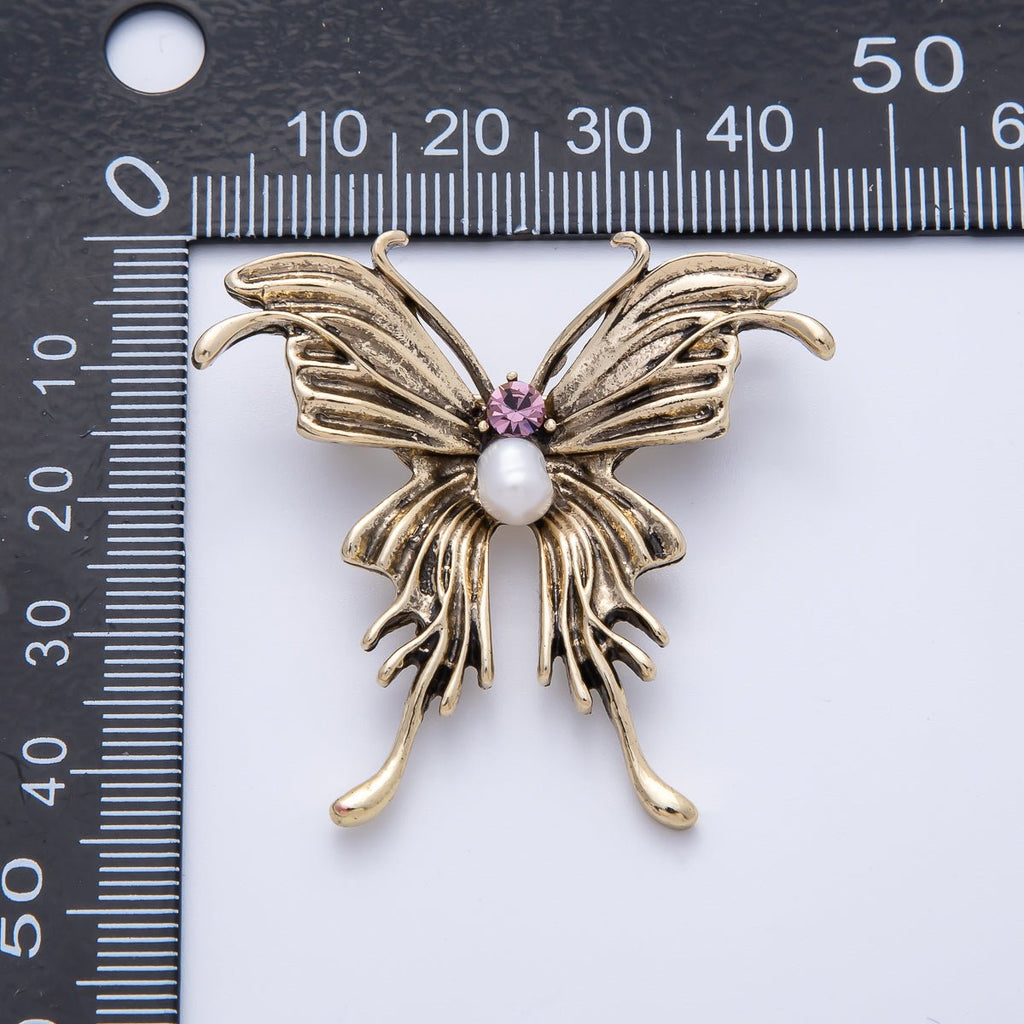 Vintage Gold 41mm Purple CZ Shell Pearl Butterfly Mariposa Animals Brooch Pin | BH-016