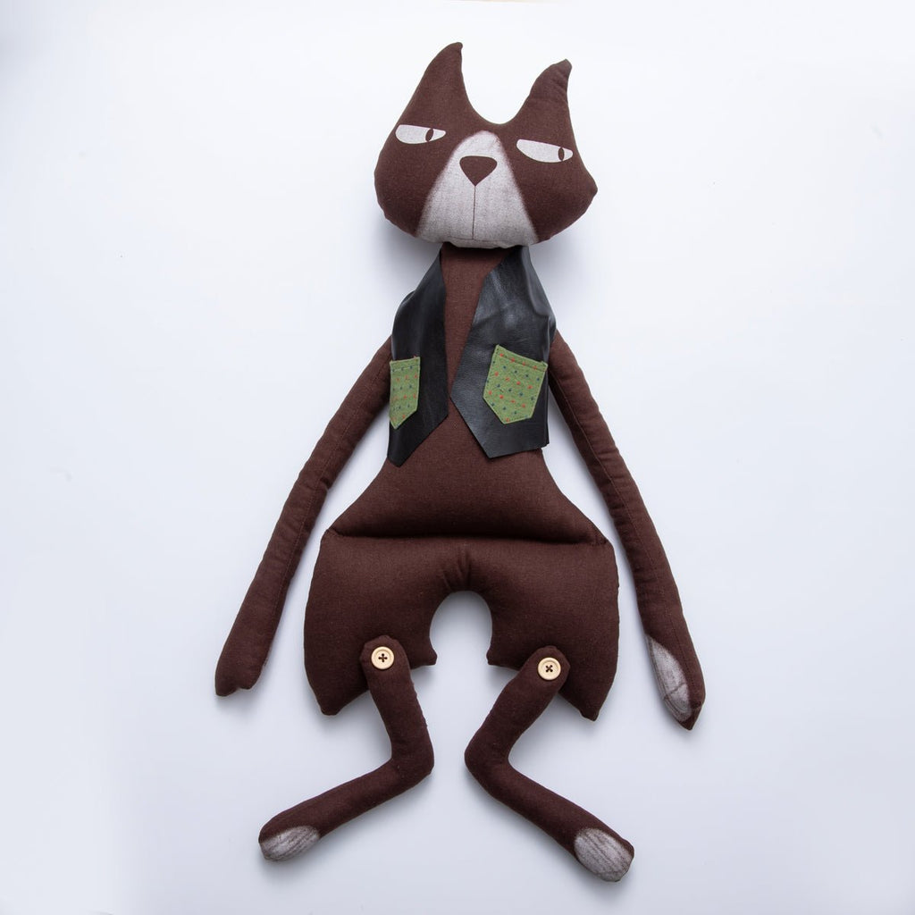 Big Handmade Black Cat Fabric Halloween Decoration Ornaments Stuffed Animal Door Wall Haunted House Accents WB-00071