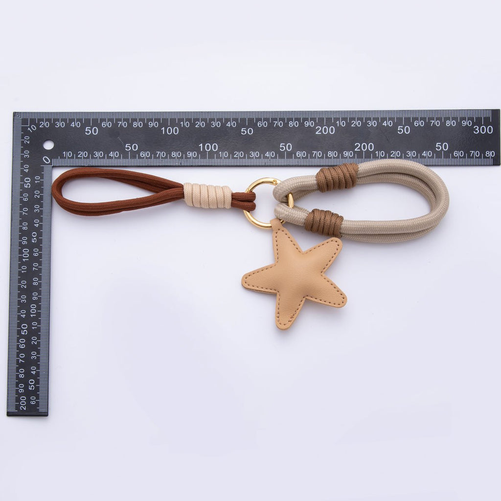 Brown Leather Shooting Star Keychain Handmade Bag Charm Cute Leather Backpack Accessory WB-00108