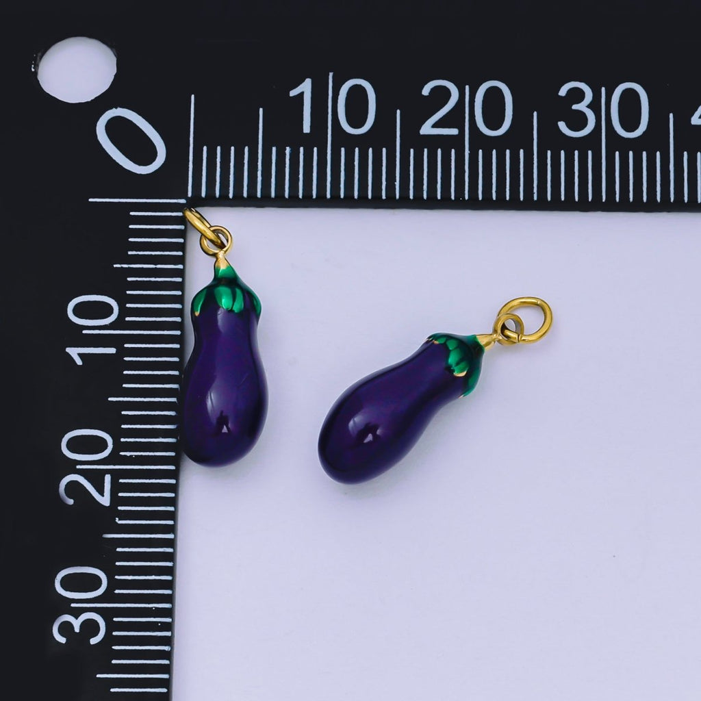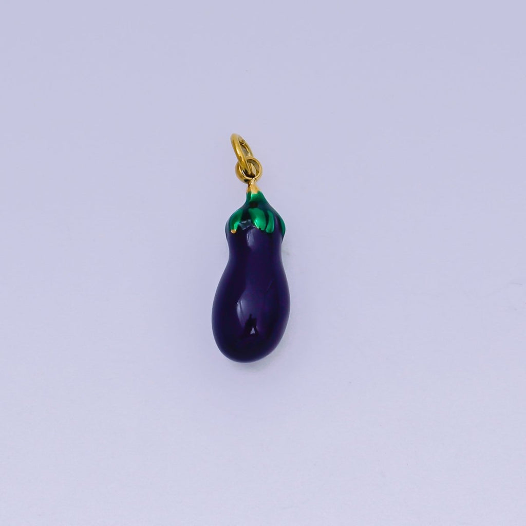 Stainless Steel 18mm Purple Enamel Eggplant Vegetable Charm | J-502