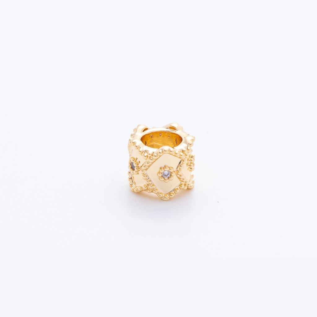 18K Gold Filled CZ Dotted Geometric Rondelle Bead Spacer | AF1030