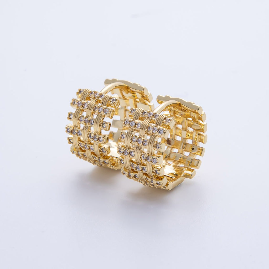 14K Gold Filled 16.5mm Micro Paved CZ Woven Ribbed Huggie Earring in Gold & Silver | EARRINGS-00006-00007