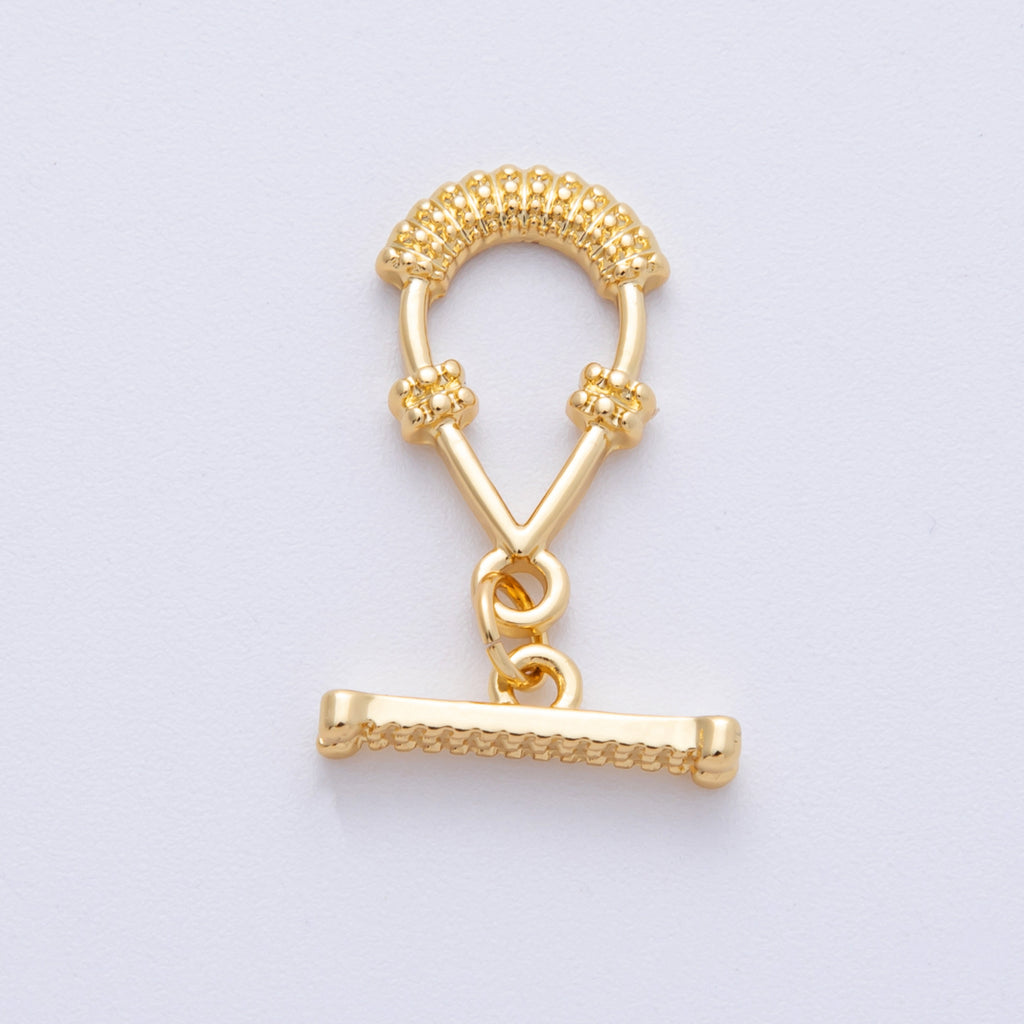 16K Gold Filled 20mm Textured Teardrop OT Toggle Clasp Finding | Findings-00027