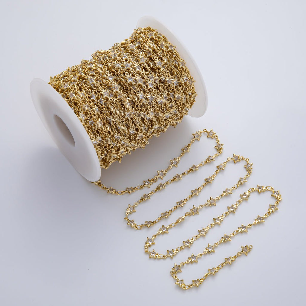 18K Gold Filled 10mm x 6mm Clear Celestial Star Unfinished Chain by Yard | Roll-1781
