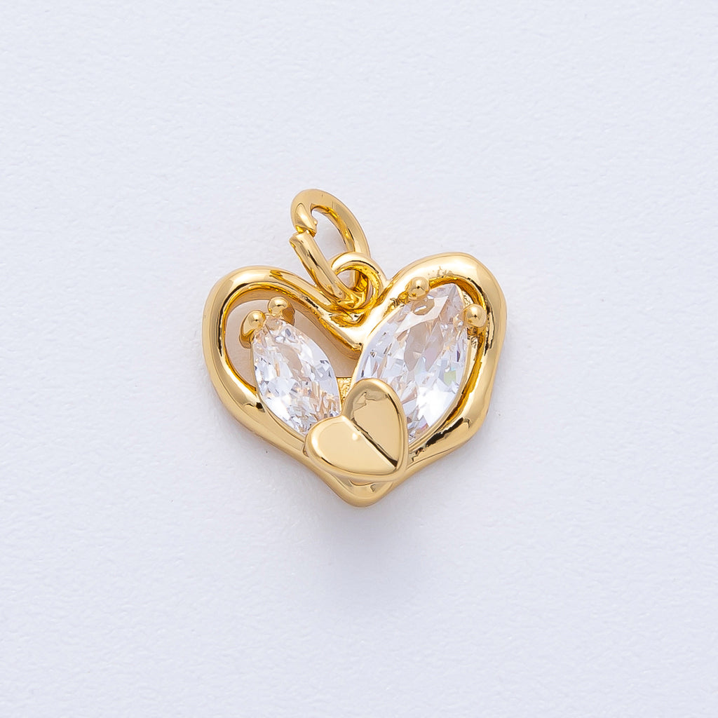 18K Gold Filled 12mm Clear Marquise CZ Molten Heart Charm | AK167
