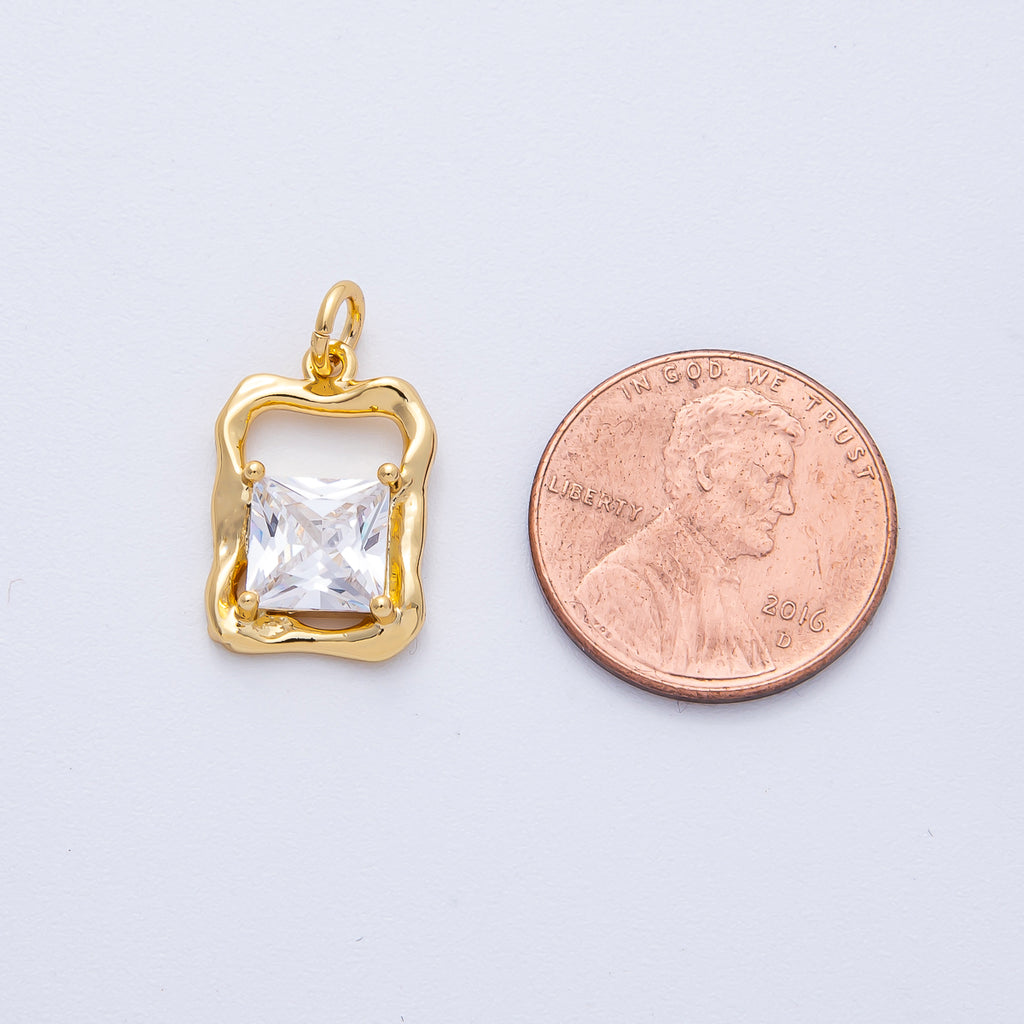 18K Gold Filled 17mm Clear Baguette CZ Open Molten Rectangular Charm | AK190