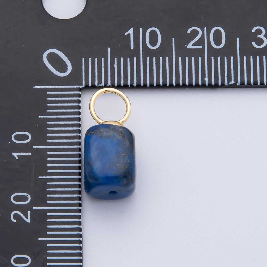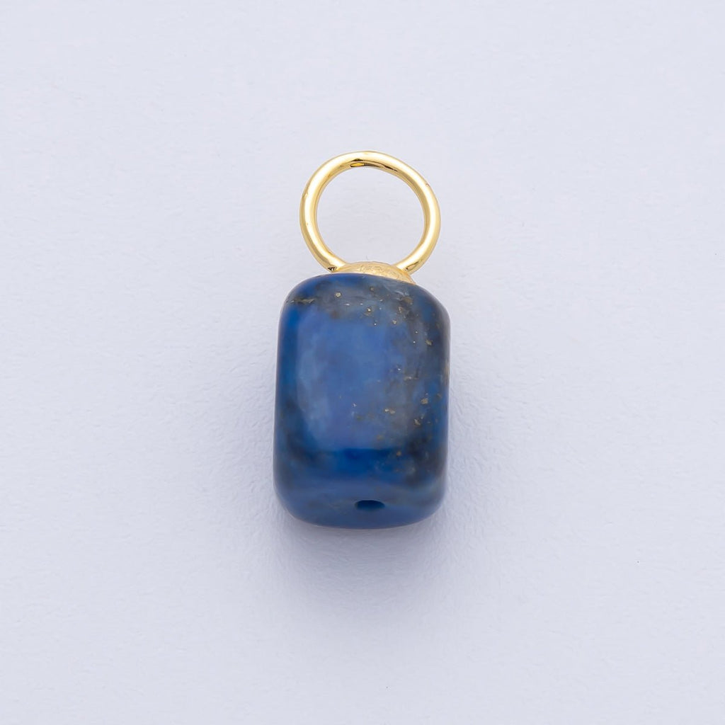 18K Gold Filled 17mm Geometrical Cube Lapis Gemstone Drop Charm | AF1393