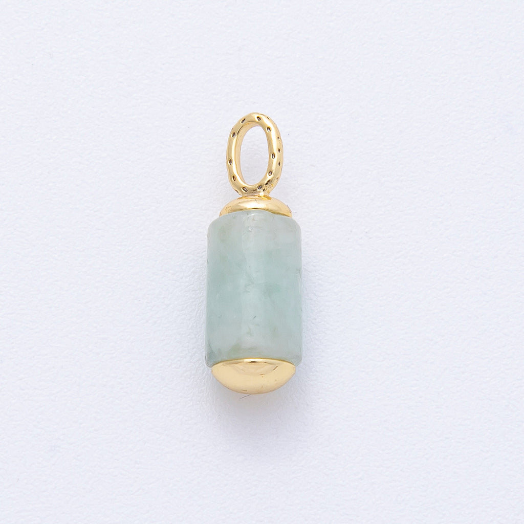 18K Gold Filled 17mm Green Prehnite Gemstone Cylinder Tube Drop Charm | AK146